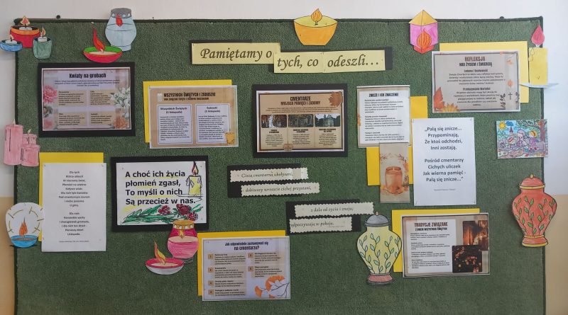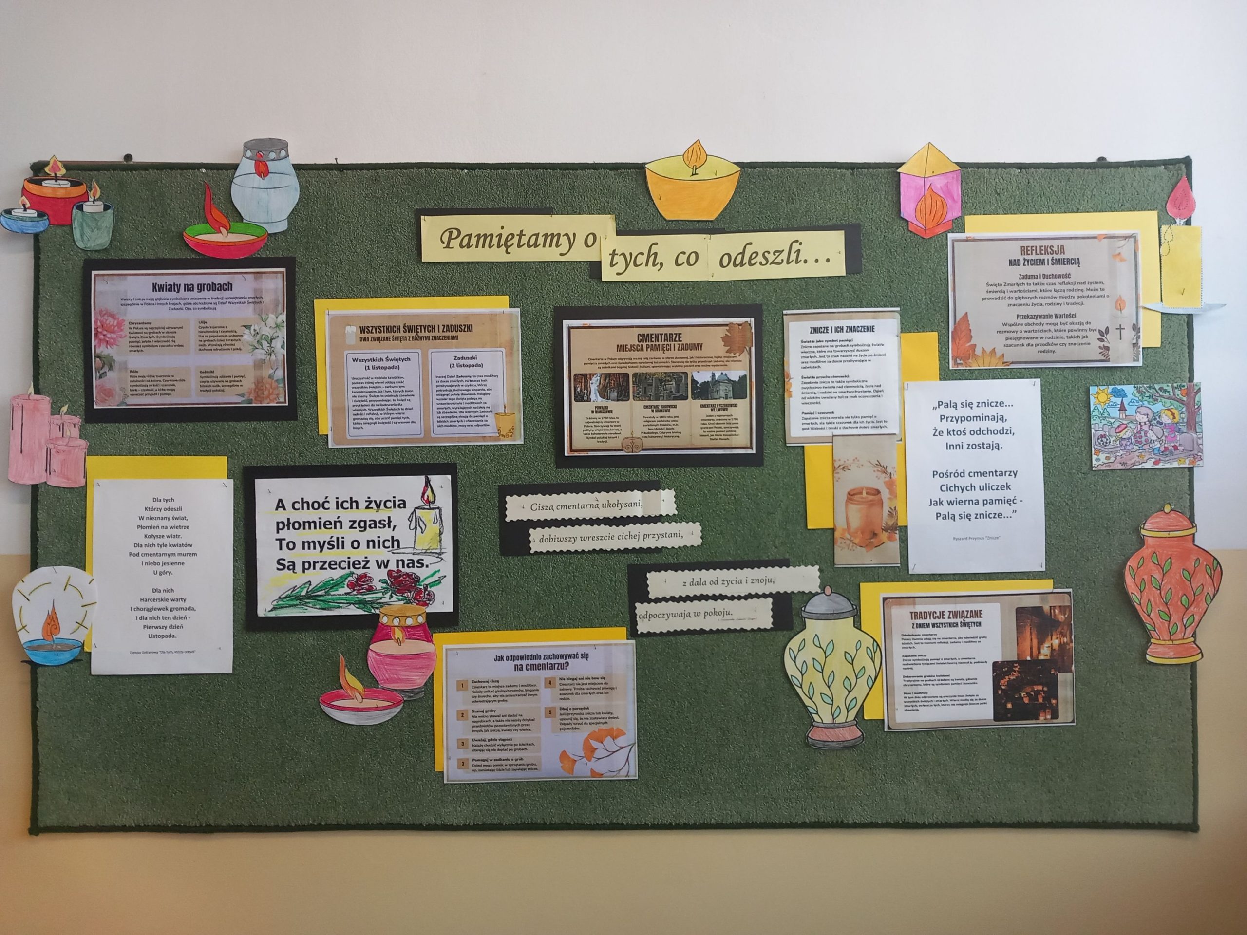 o bliskich, których już z nami nie ma. W sali pojawiły się również prace plastyczne wykonane przez uczniów, nawiązujące do tematyki tygodnia.