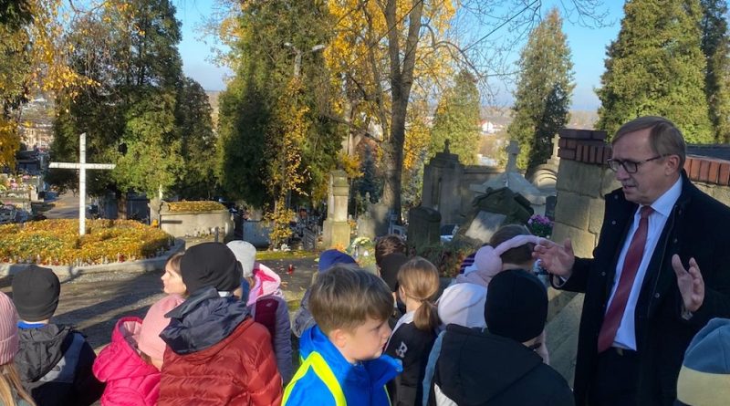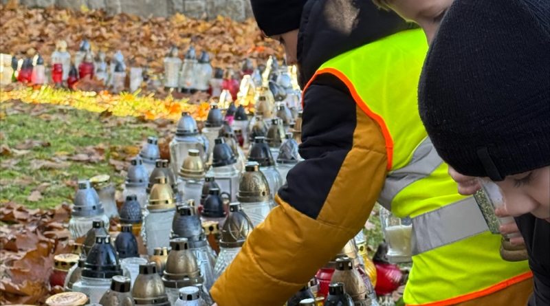 z dużym zainteresowaniem słuchali jego opowieści, zadawali pytania i zapalili znicze na zbiorowych mogiłach, oddając hołd zmarłym.