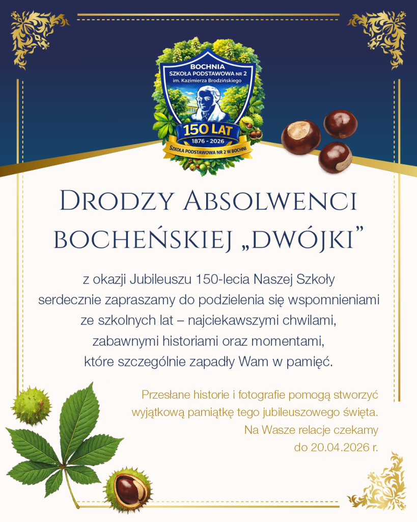 Przed nami wyjątkowe wydarzenie – Jubileusz 150-lecia naszej Szkoły. To piękna historia pełna wspomnień, przyjaźni, wzruszeń oraz chwil, które dla wielu z Was były początkiem ważnej życiowej drogi.