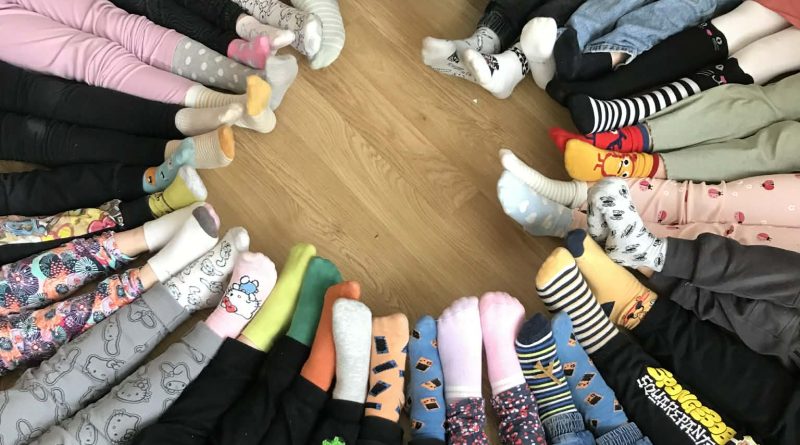 W naszej szkole uczniowie oraz nauczyciele założyli skarpetki nie do pary, aby zwrócić uwagę na różnorodność