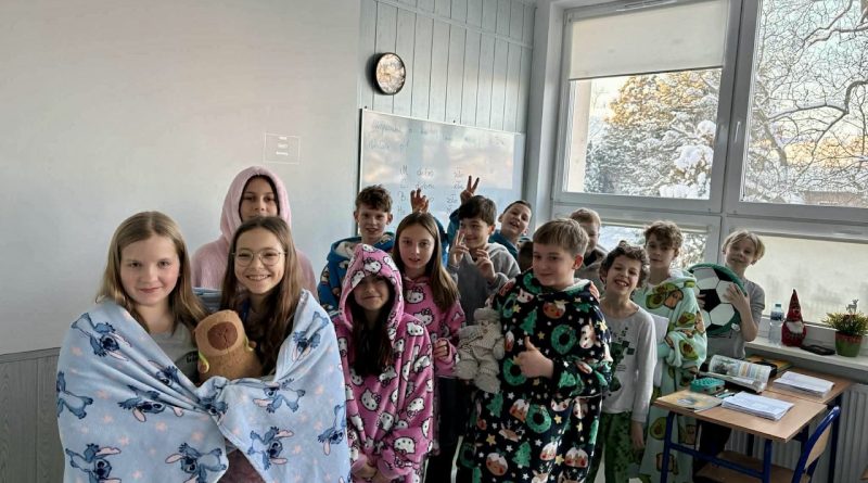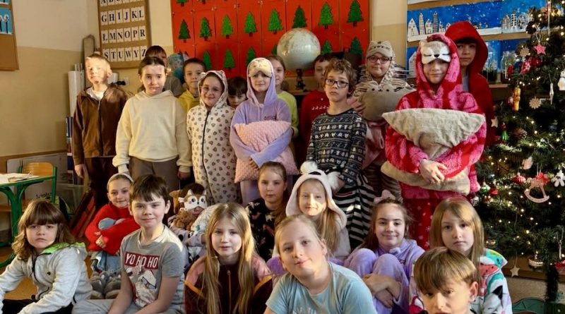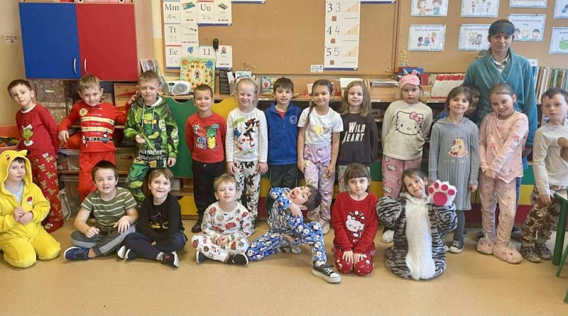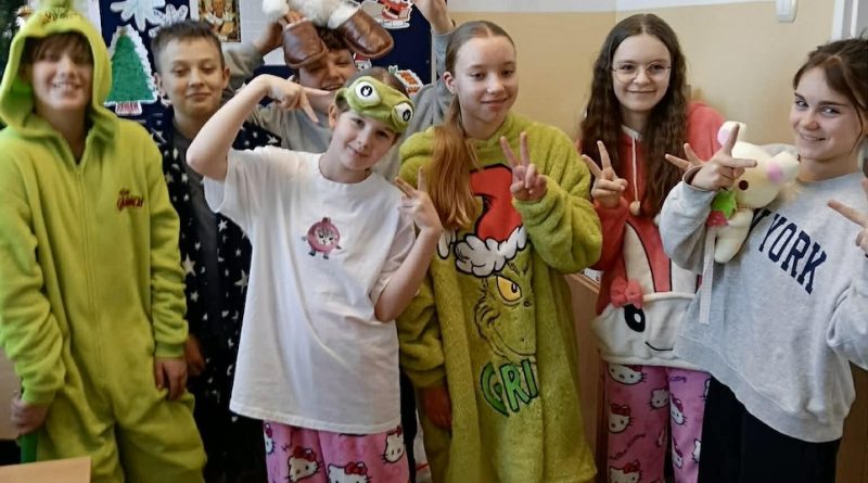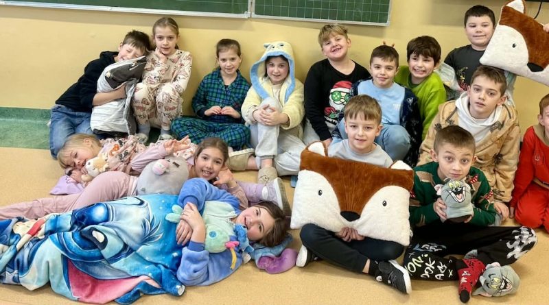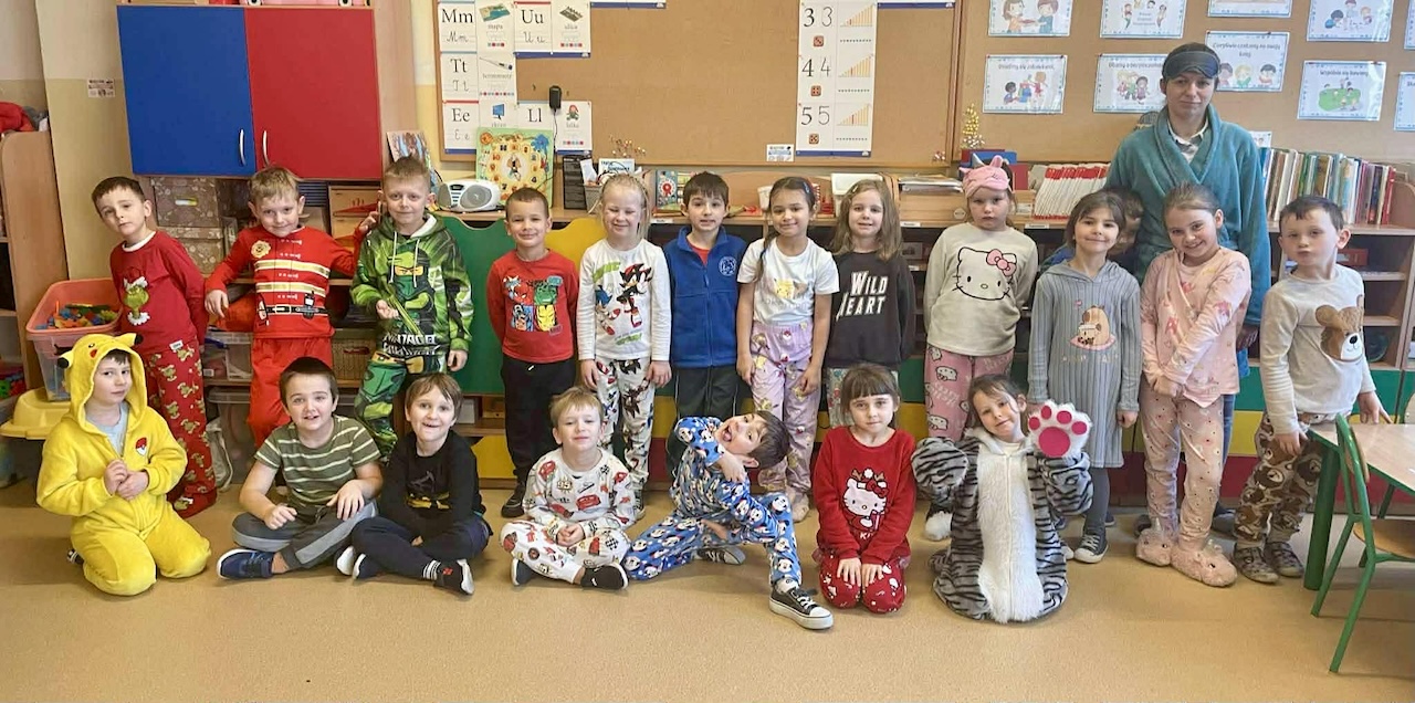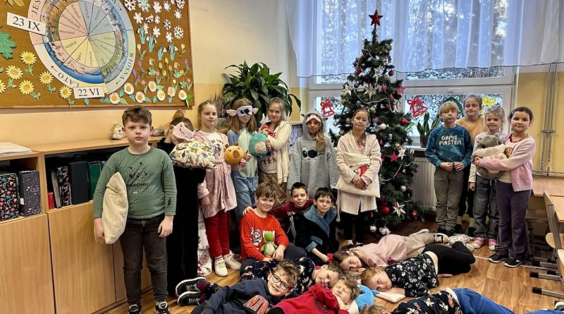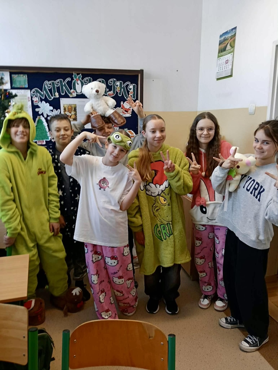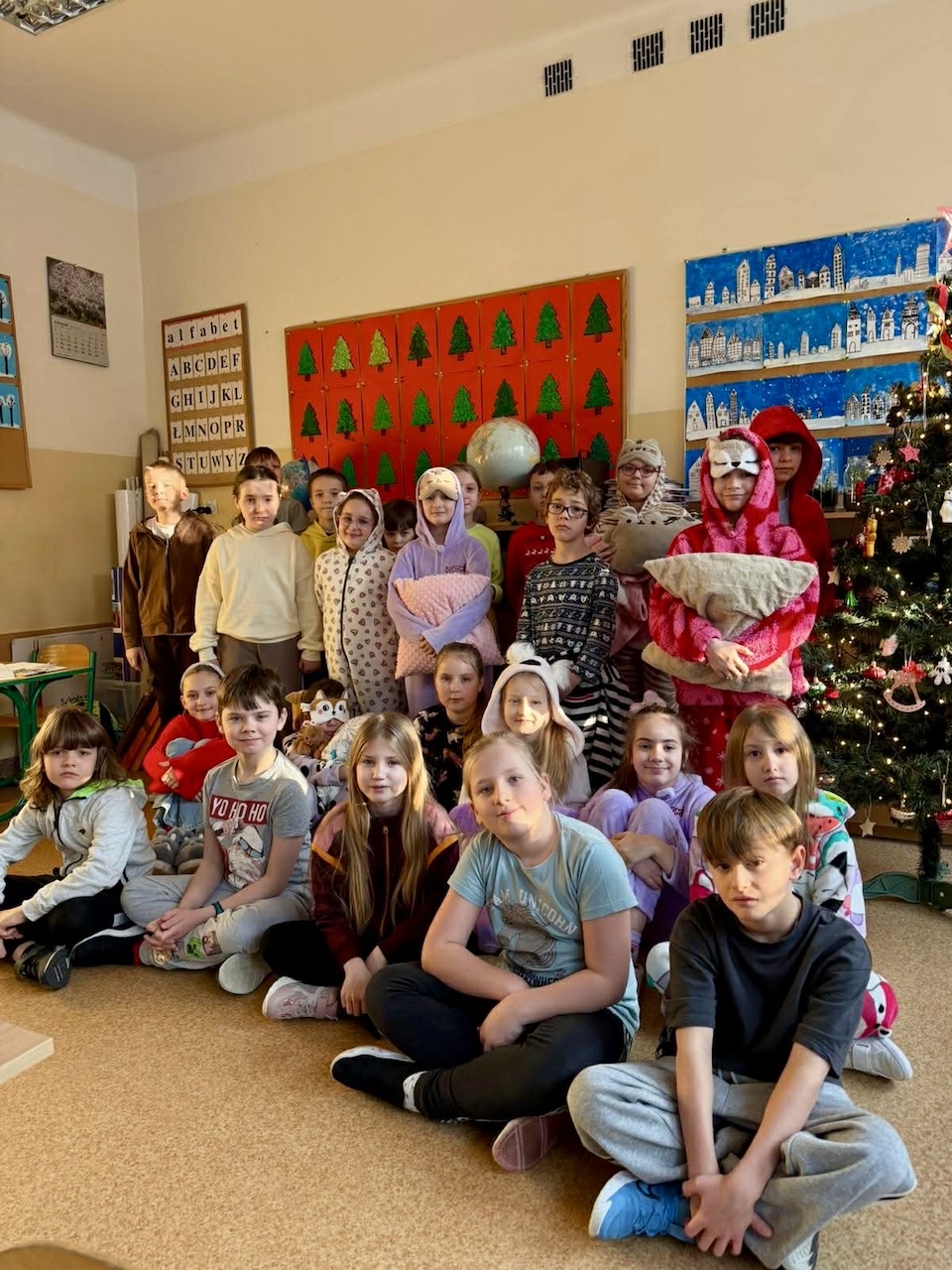 Uczniowie przyszli na zajęcia w piżamach, szlafrokach, kapciach oraz z poduszkami, tworząc wyjątkową, bardzo przytulną atmosferę 🤗.