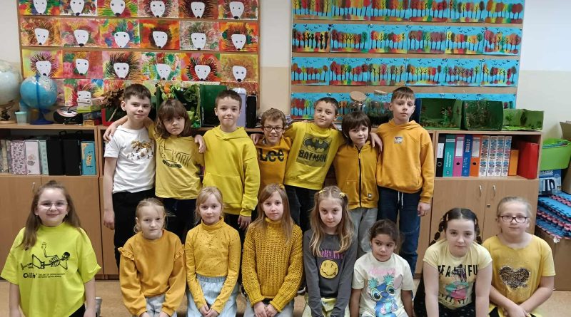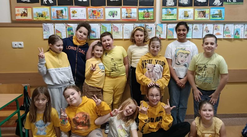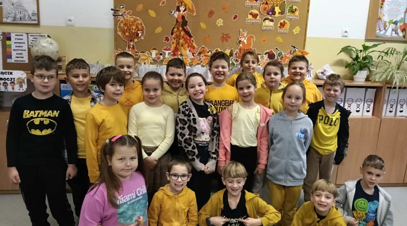 Tego dnia obchodziliśmy także Dzień Koloru Żółtego, dlatego liczne żółte elementy ubioru nadały całemu wydarzeniu jeszcze bardziej słonecznego charakteru. Kolorowe przebłyski można było dostrzec na każdym kroku – od bluzek i opasek, po akcenty w stylizacjach nauczycieli.