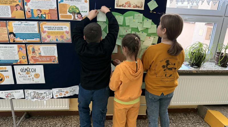 Już od rana na parterze szkoły uwagę przyciągała kolorowa gazetka tematyczna oraz wyjątkowe Drzewo Życzliwości i Pozdrowień. Każdy mógł zatrzymać się na chwilę, dopisać własne miłe słowo, życzenie lub komplement i zawiesić je na gałęziach symbolicznego drzewa.