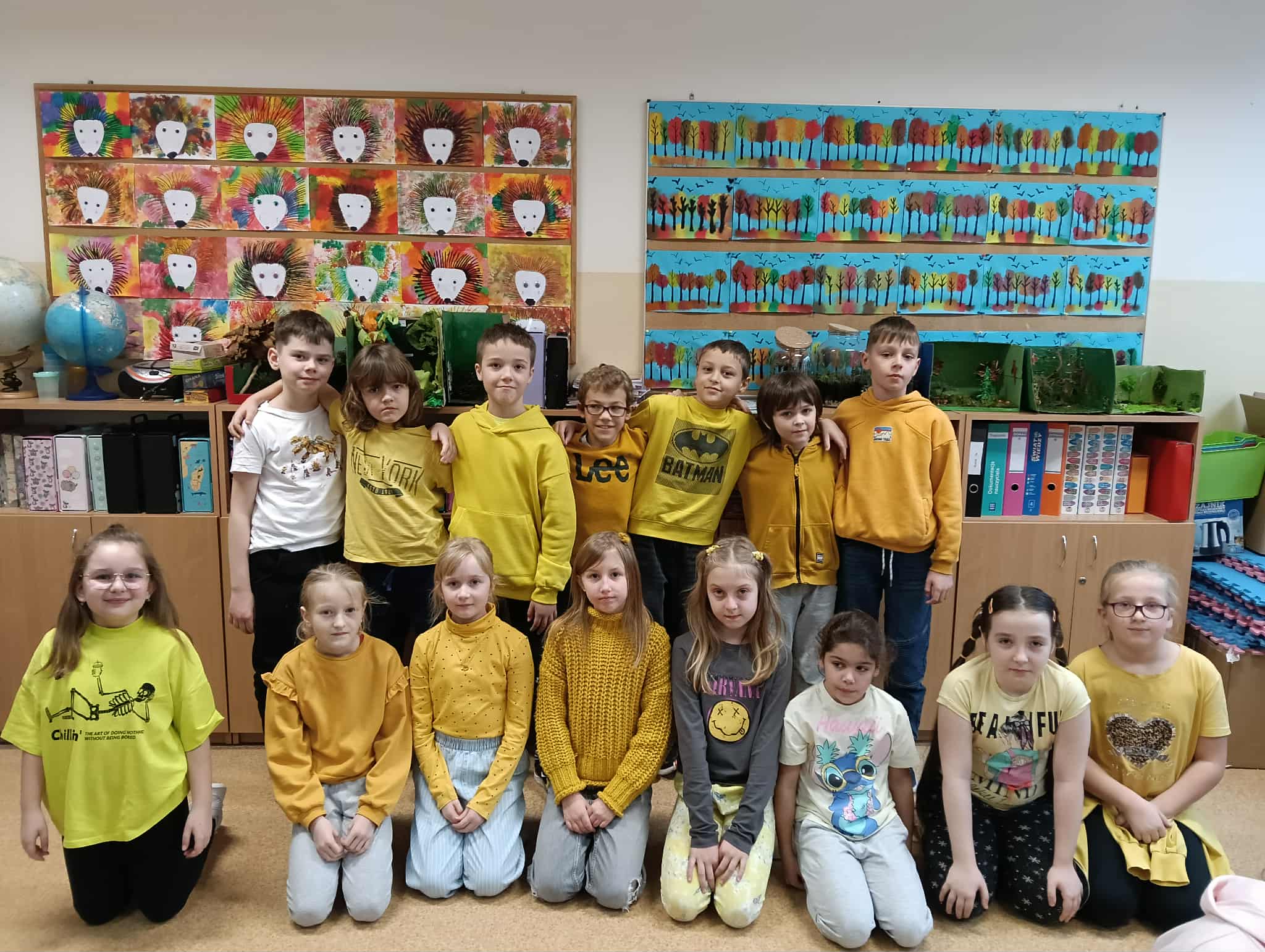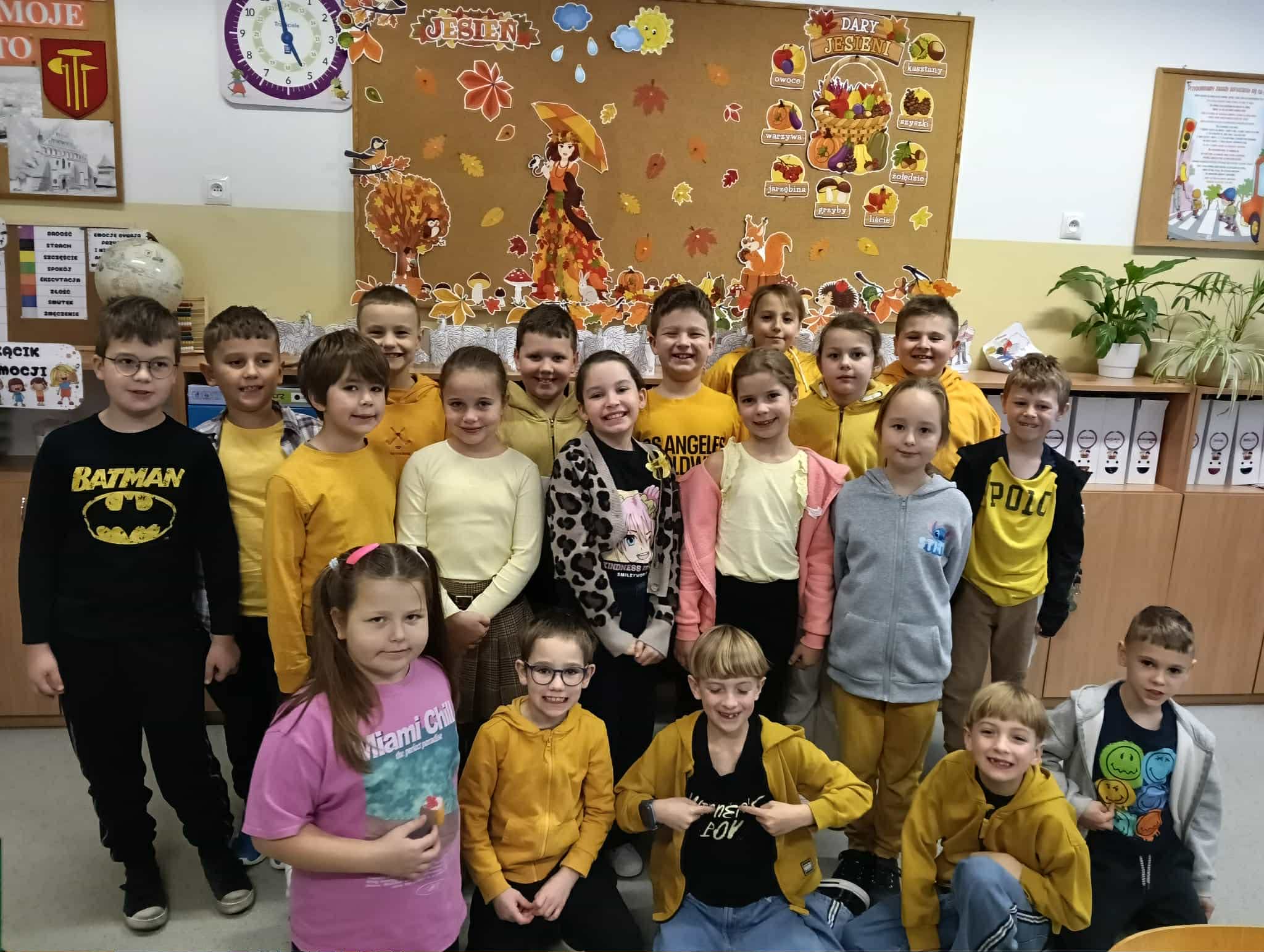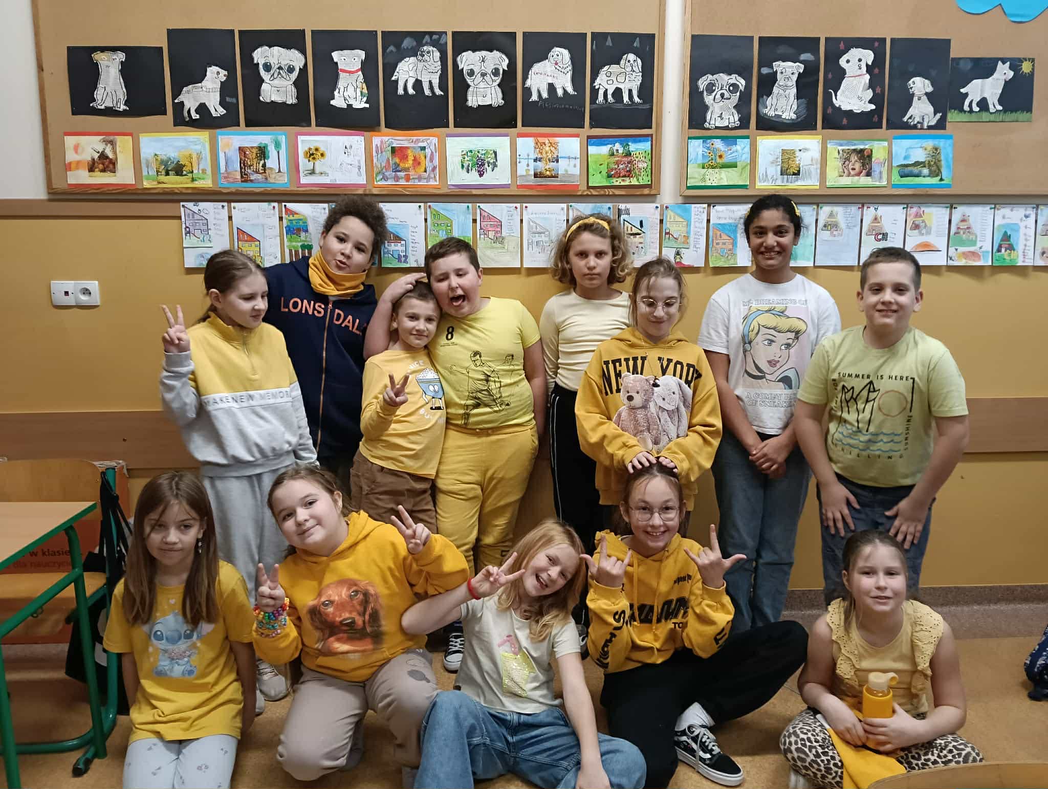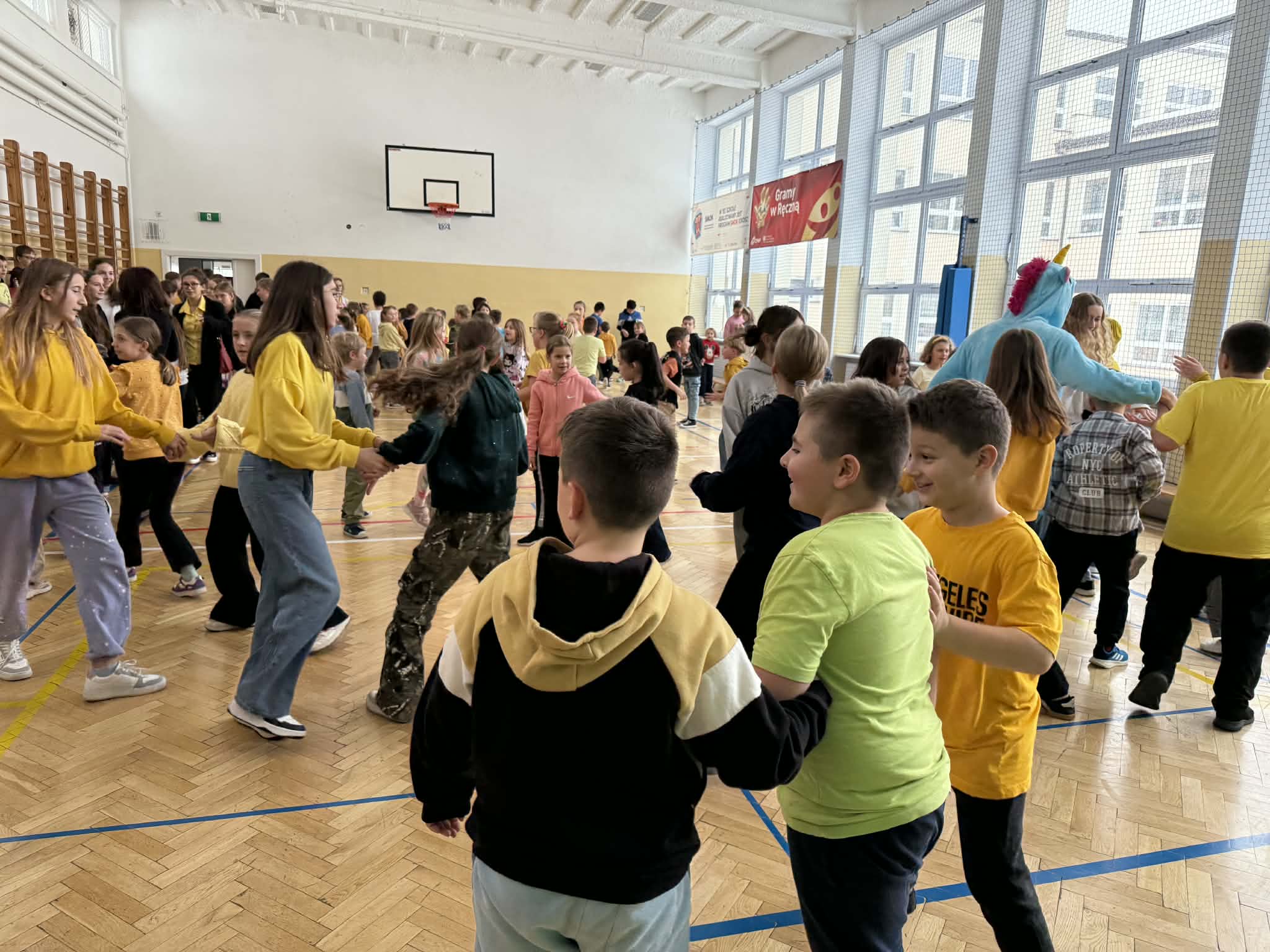 Tego dnia obchodziliśmy także Dzień Koloru Żółtego, dlatego liczne żółte elementy ubioru nadały całemu wydarzeniu jeszcze bardziej słonecznego charakteru. Kolorowe przebłyski można było dostrzec na każdym kroku – od bluzek i opasek, po akcenty w stylizacjach nauczycieli.