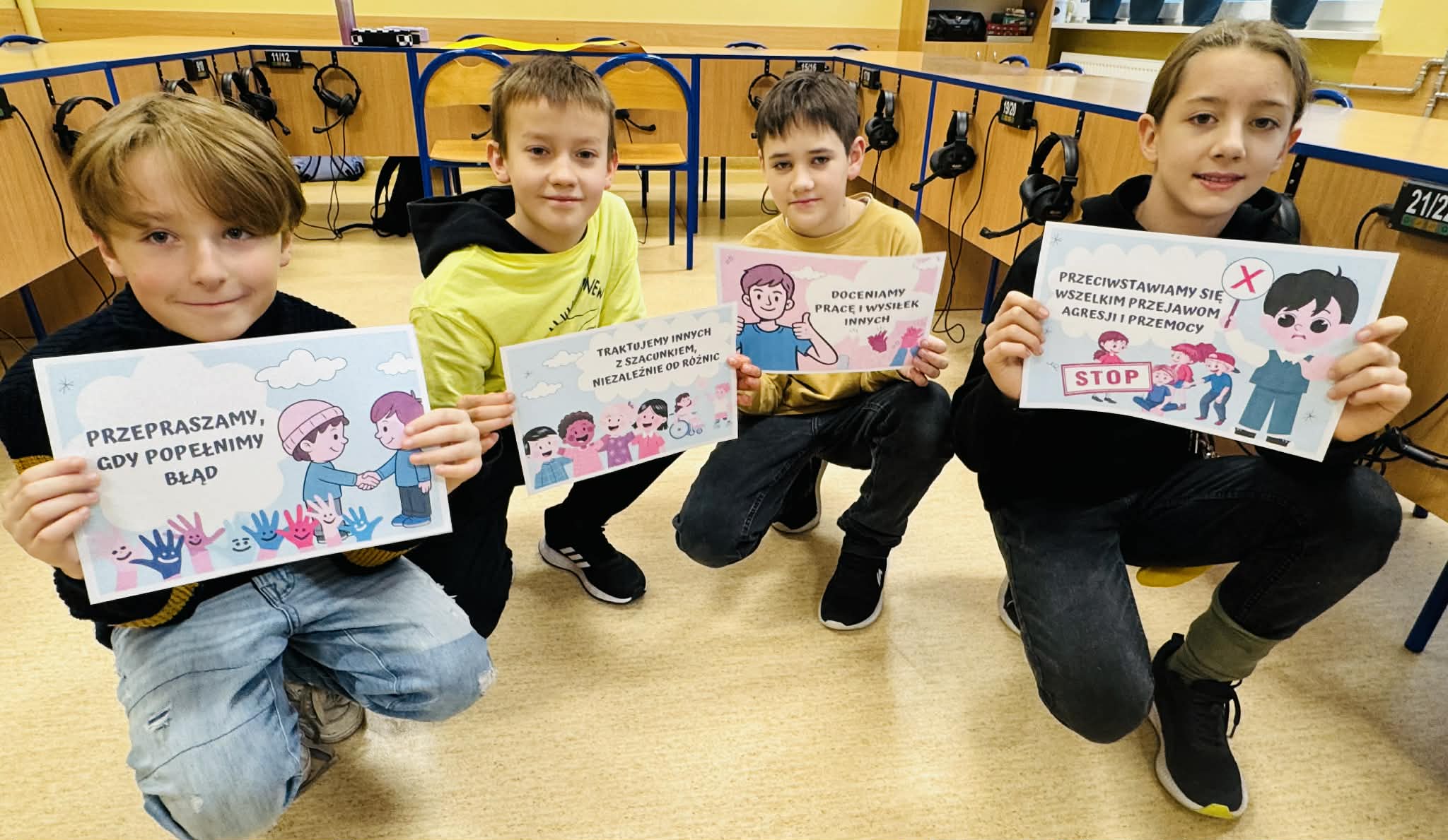 Razem rozmawiamy o dobroci, szacunku, przyjaźni, pomocy i przepraszaniu.