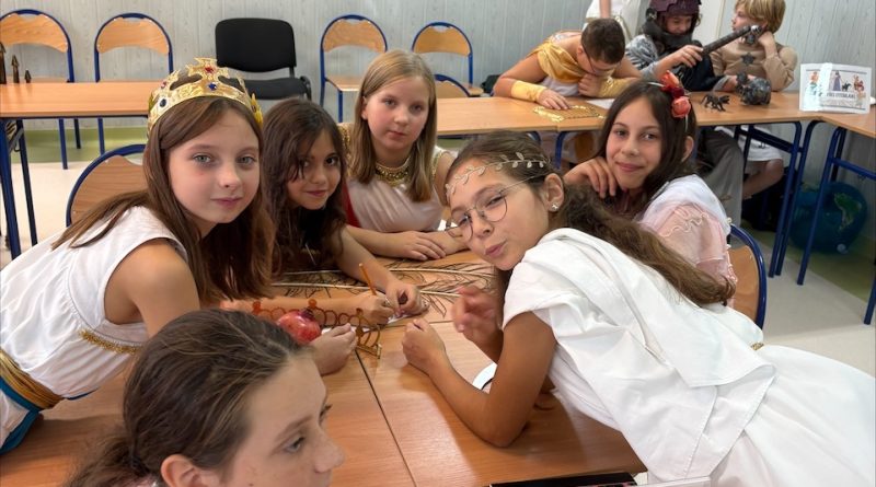 Na zakończenie dnia kolorowym korowodem odwiedzili młodszych kolegów z edukacji wczesnoszkolnej, prezentując swoje stroje i dzieląc się mitologiczną atmosferą. 🌿⚡
