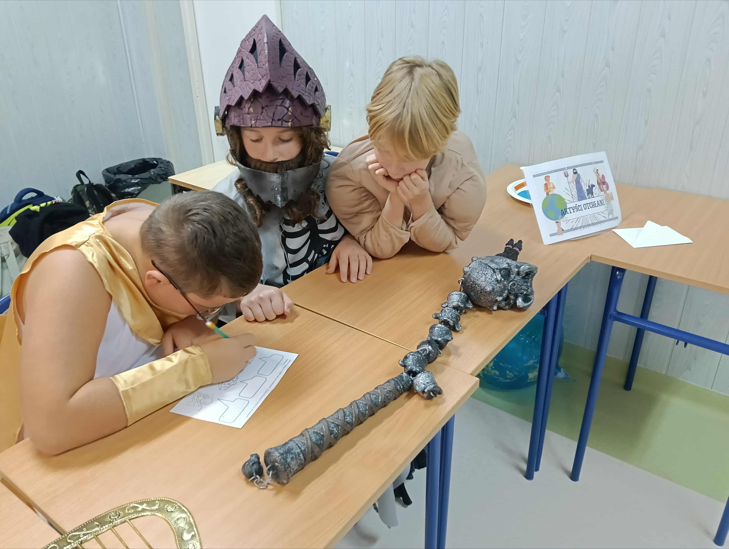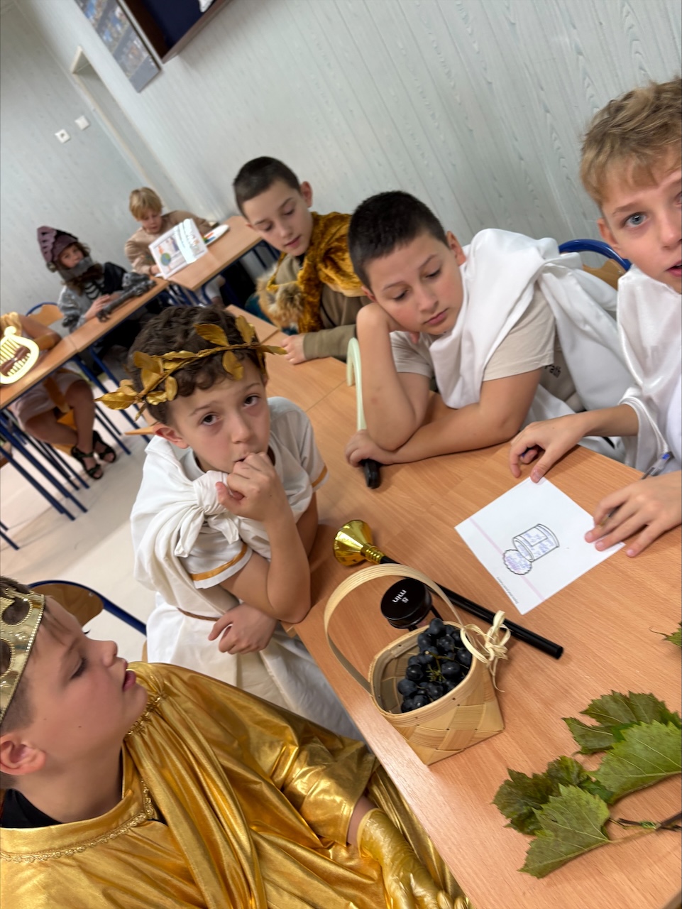 Uczniowie z 5c, przebrani za bogów i bohaterów greckich, wzięli udział w konkursie wiedzy mitologicznej. Z wielkim zaangażowaniem wykonywali kolejne zadania.