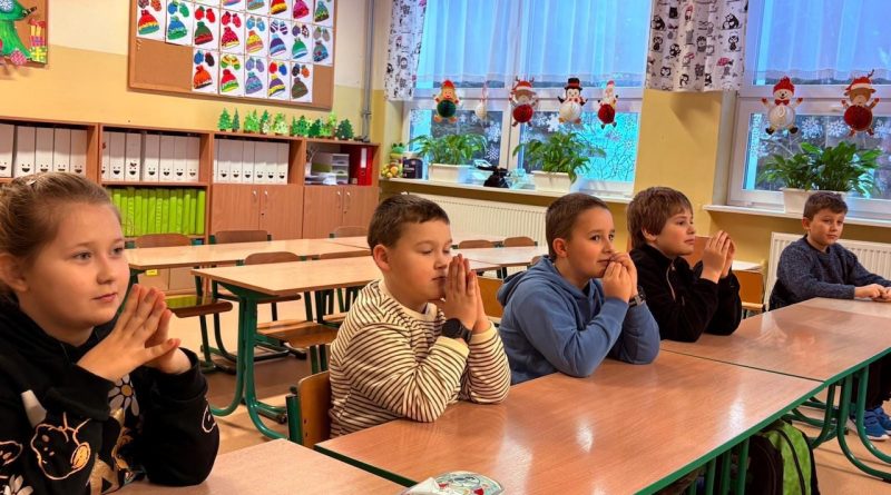 Spotkanie rozpoczęło się od krótkich działań wprowadzających w formie ćwiczeń edukacyjnych, które pozwoliły uczniom skupić uwagę, wyciszyć się i przygotować do dalszej pracy👂👀. Była to płynna rozgrzewka przed częścią zasadniczą zajęć.