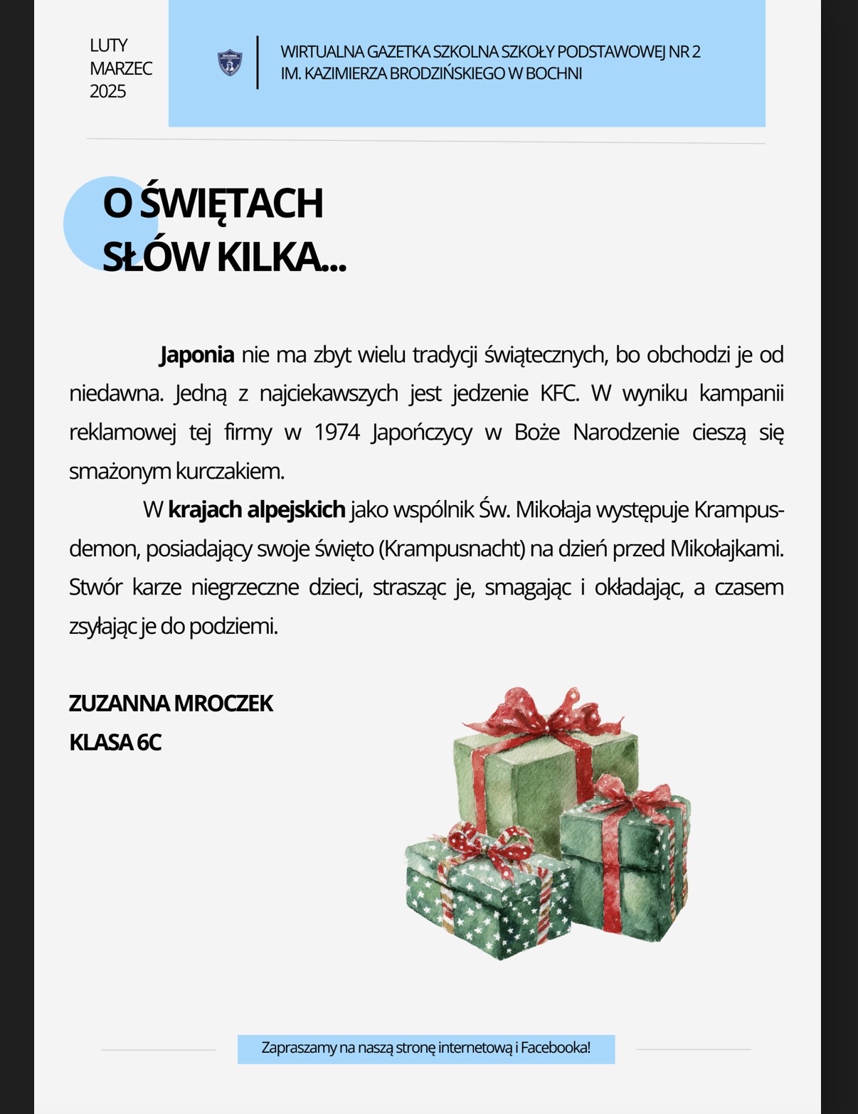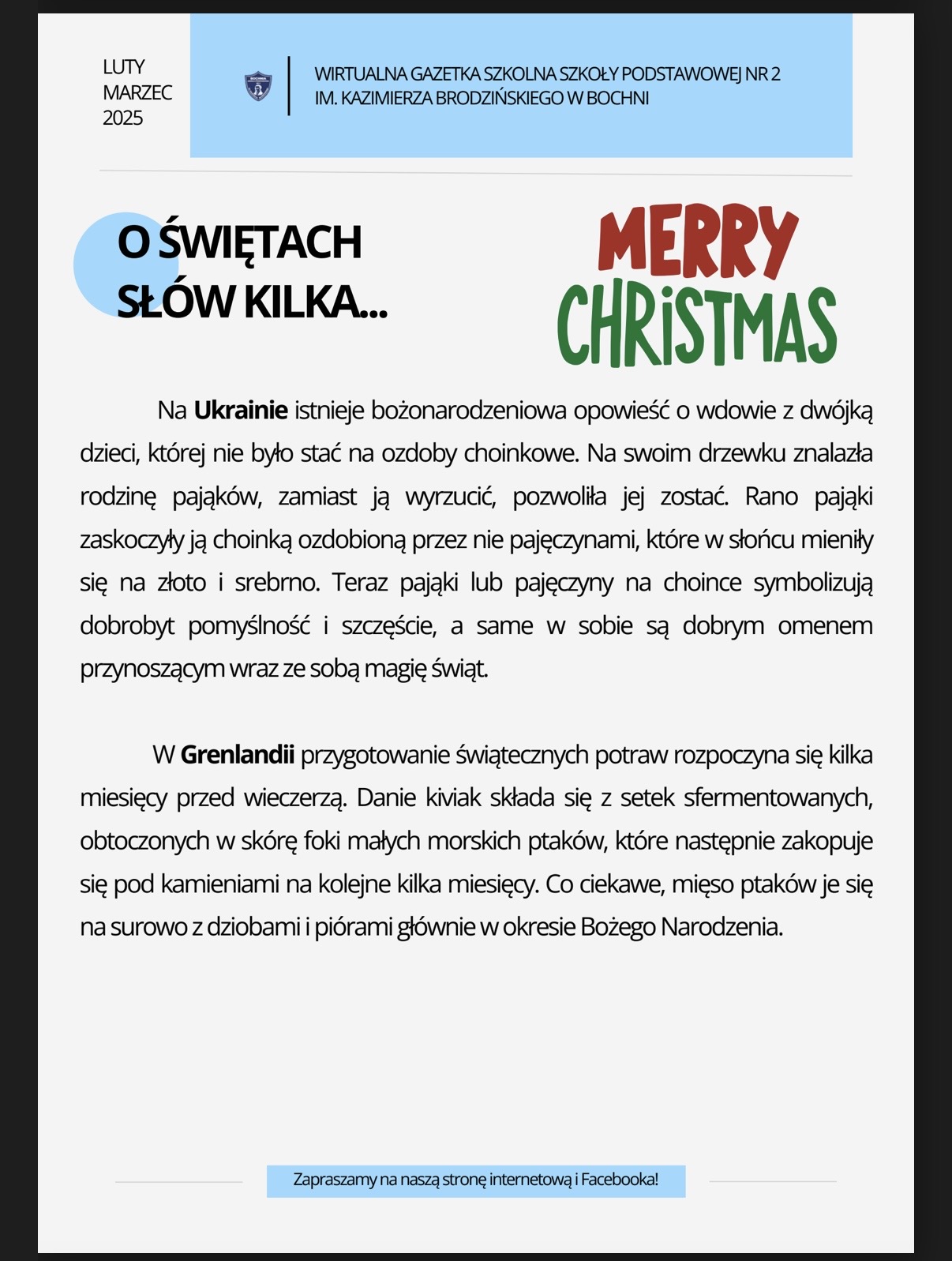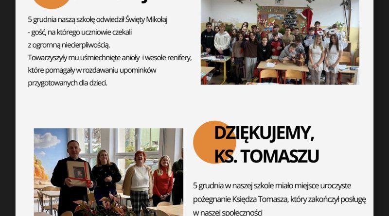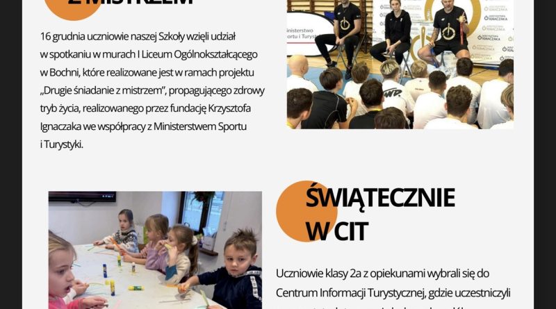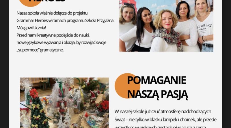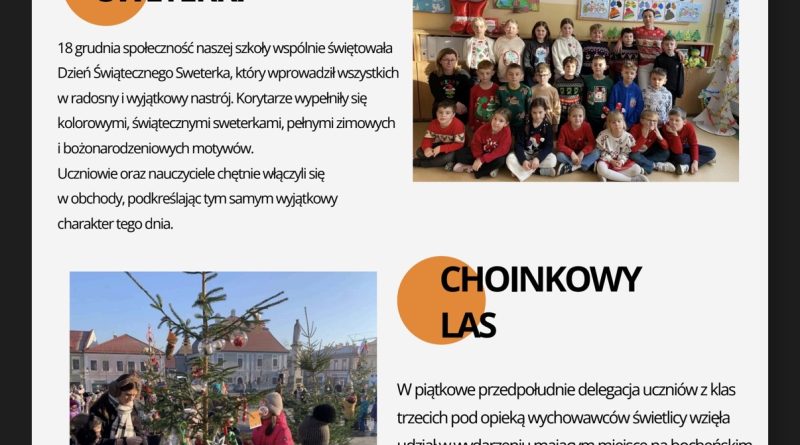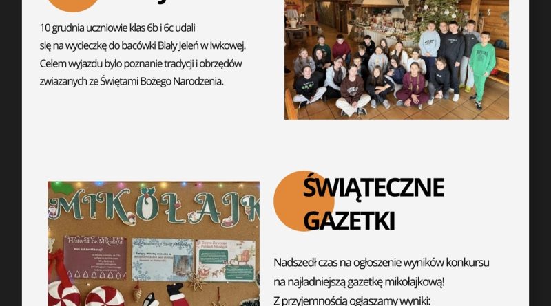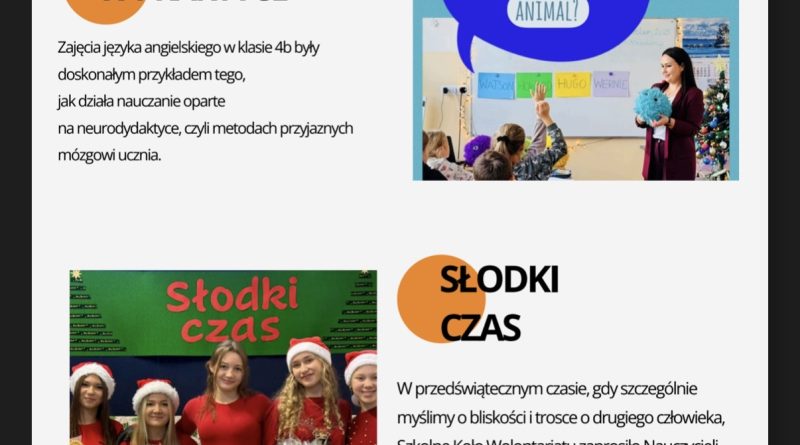 Zapraszamy na nowe wydanie naszej szkolnej gazetki! Znajdziecie nim świąteczne artykuły i.. wywiad z panią Magdaleną Ruszaj – Sekretarzem naszej szkoły!