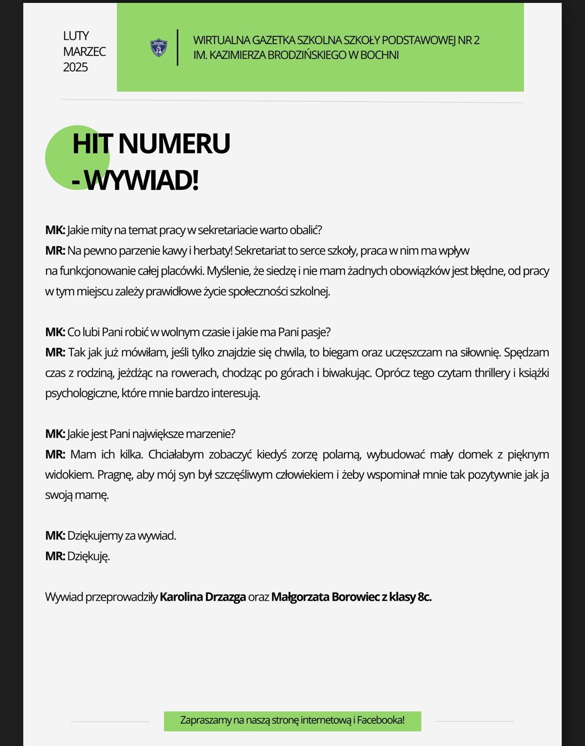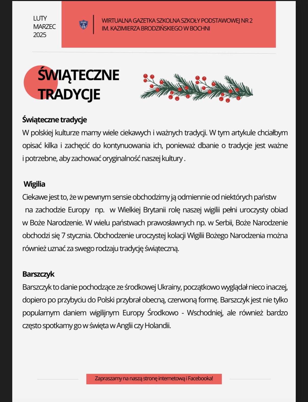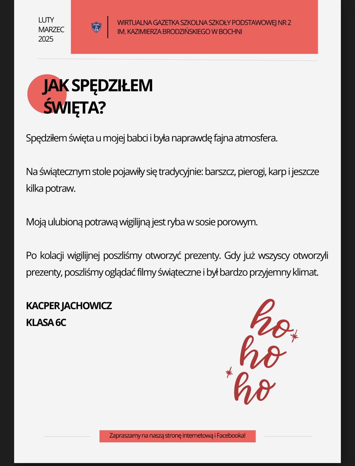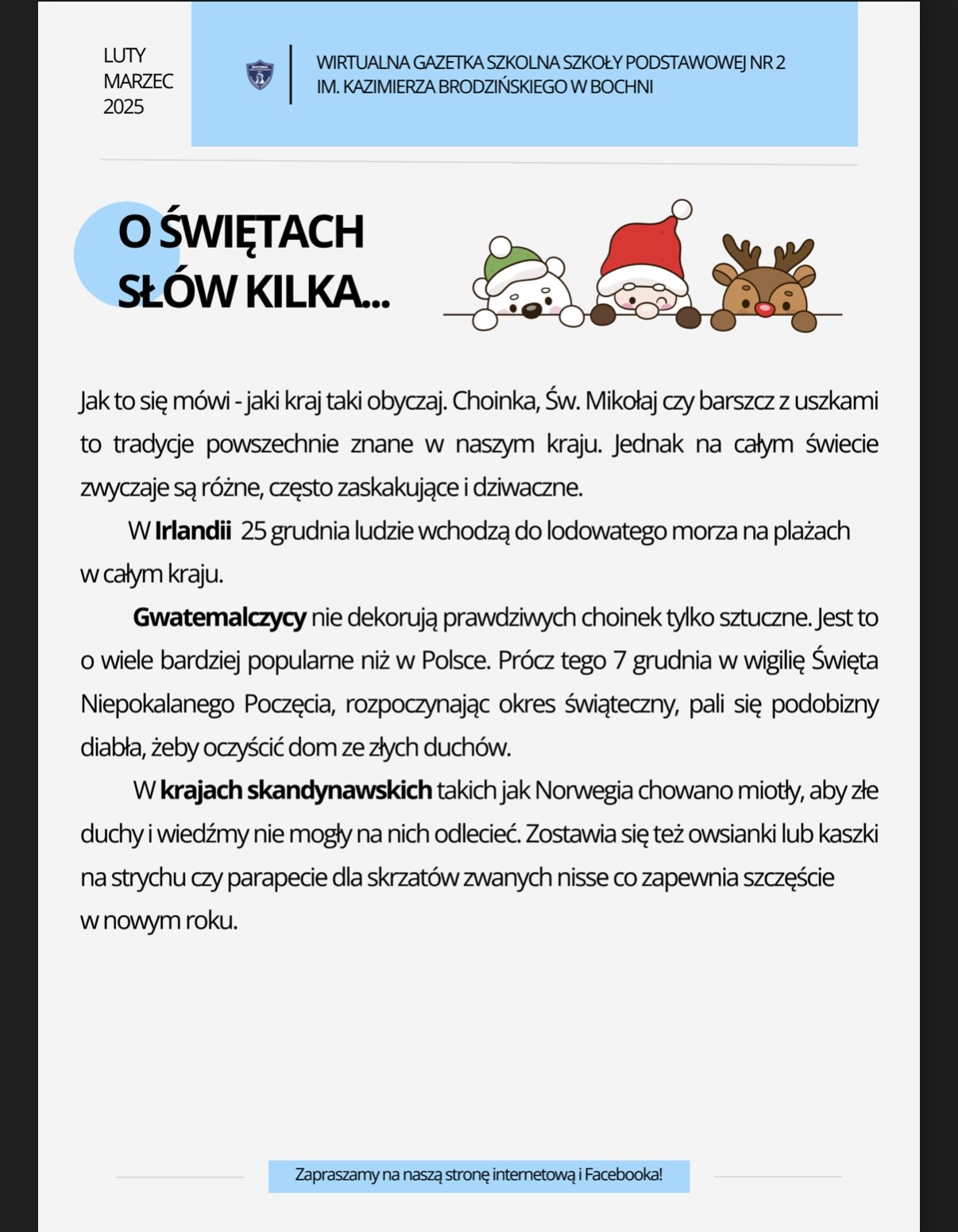 Zapraszamy na nowe wydanie naszej szkolnej gazetki! Znajdziecie nim świąteczne artykuły i.. wywiad z panią Magdaleną Ruszaj – Sekretarzem naszej szkoły!