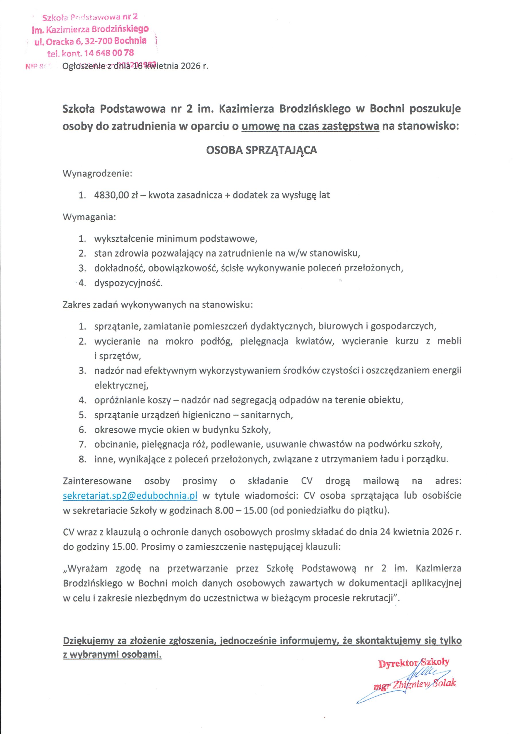 REKRUTACJA 2024/2025 KLASA I – DZIECI SPOZA OBWODU SZKOŁY