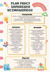 Plan pracy Samorządu Uczniowskiego w roku szkolnym 2025/2026