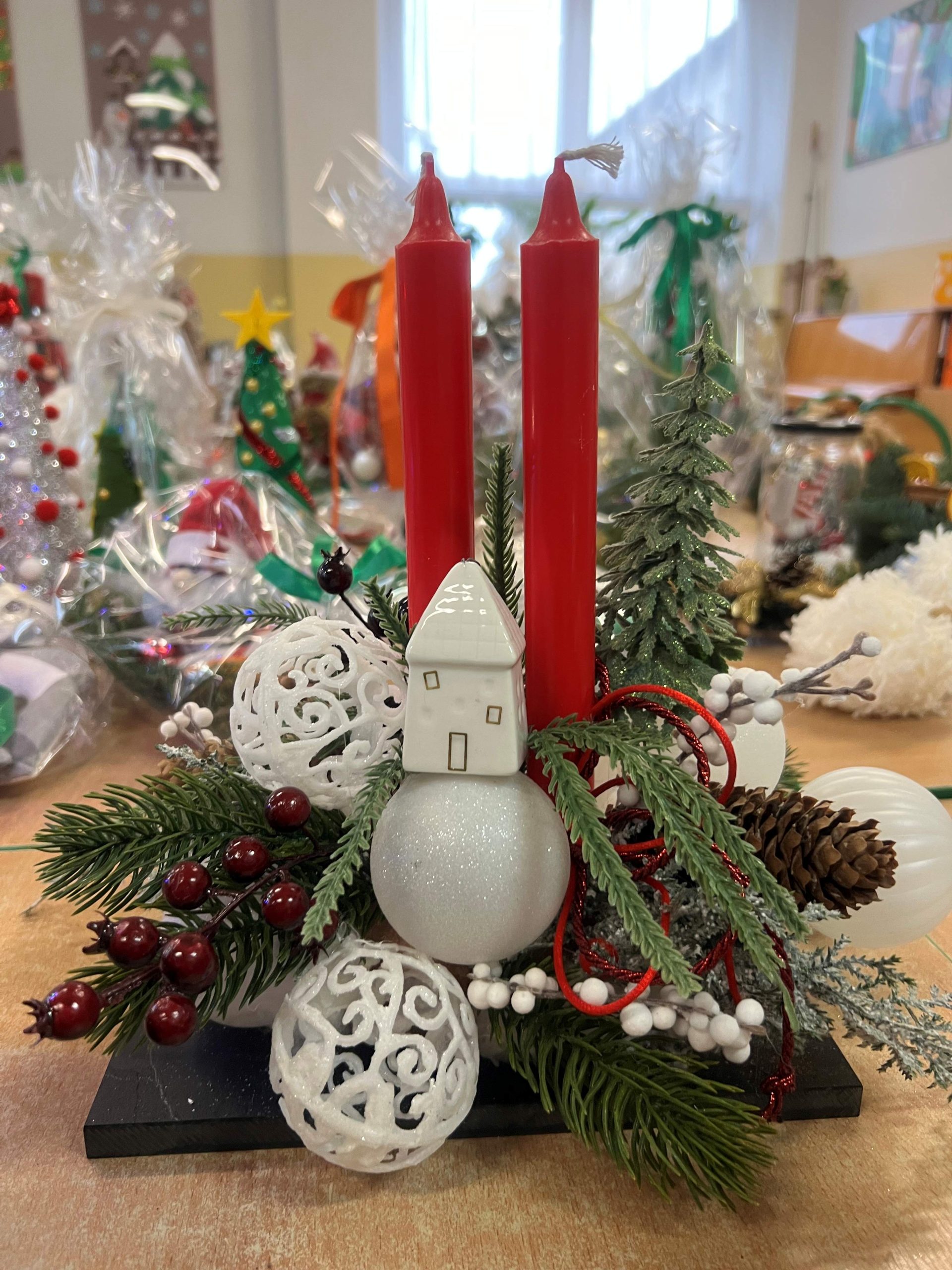 W naszej szkole już czuć atmosferę nadchodzących Świąt – nie tylko w blasku lampek i choinek, ale przede wszystkim w pięknych gestach płynących z serca. Uczniowie i nauczyciele  z ogromnym zaangażowaniem stworzyli wyjątkowe ozdoby świąteczne, które trafiły na charytatywny Kiermasz Świąteczny dla podopiecznych Domu Pomocy Społecznej w Bochni.