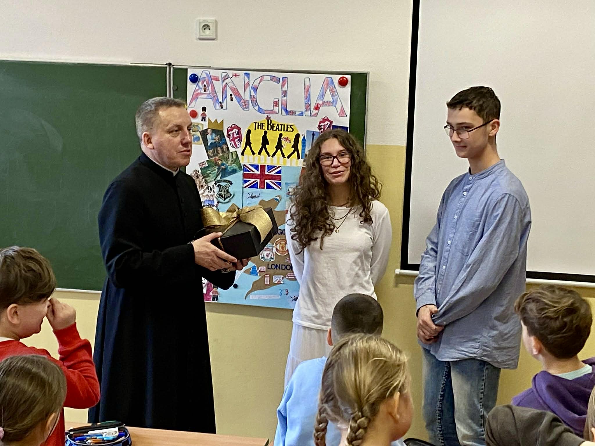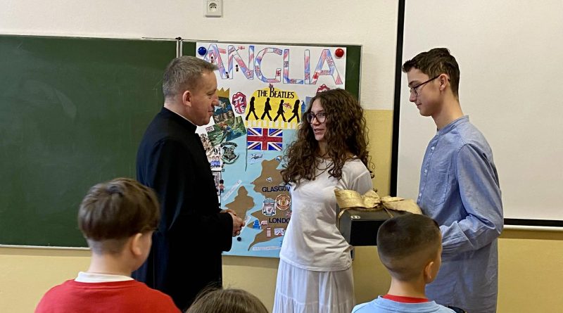 W piątek, 5 grudnia 2025 r. w naszej szkole miało miejsce uroczyste pożegnanie księdza Tomasza, który zakończył posługę w naszej społeczności i obejmie nowe obowiązki duszpasterskie.