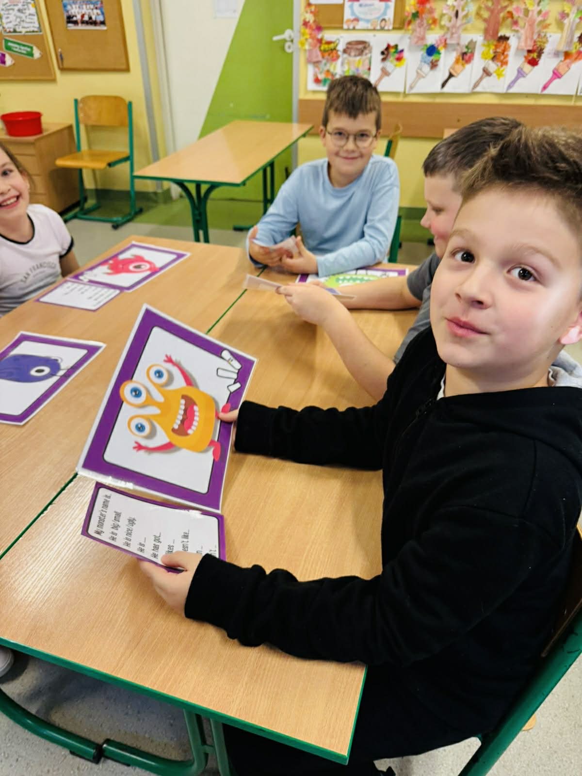 Brawo!!! Nasi uczniowie mówią po angielsku coraz pewniej, przełamują barierę językową oraz odkrywają nowe słowa w grach, zabawach jak również wspólnych wyzwaniach!