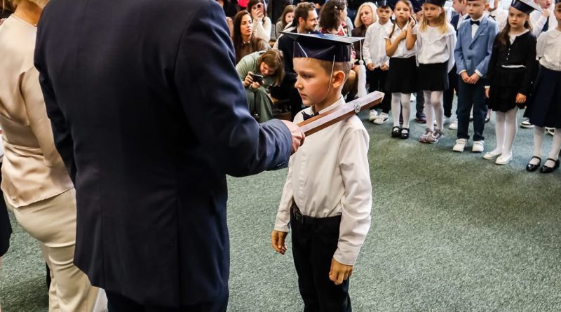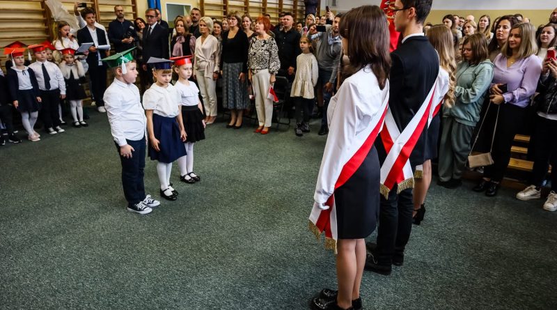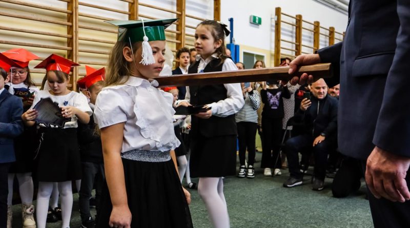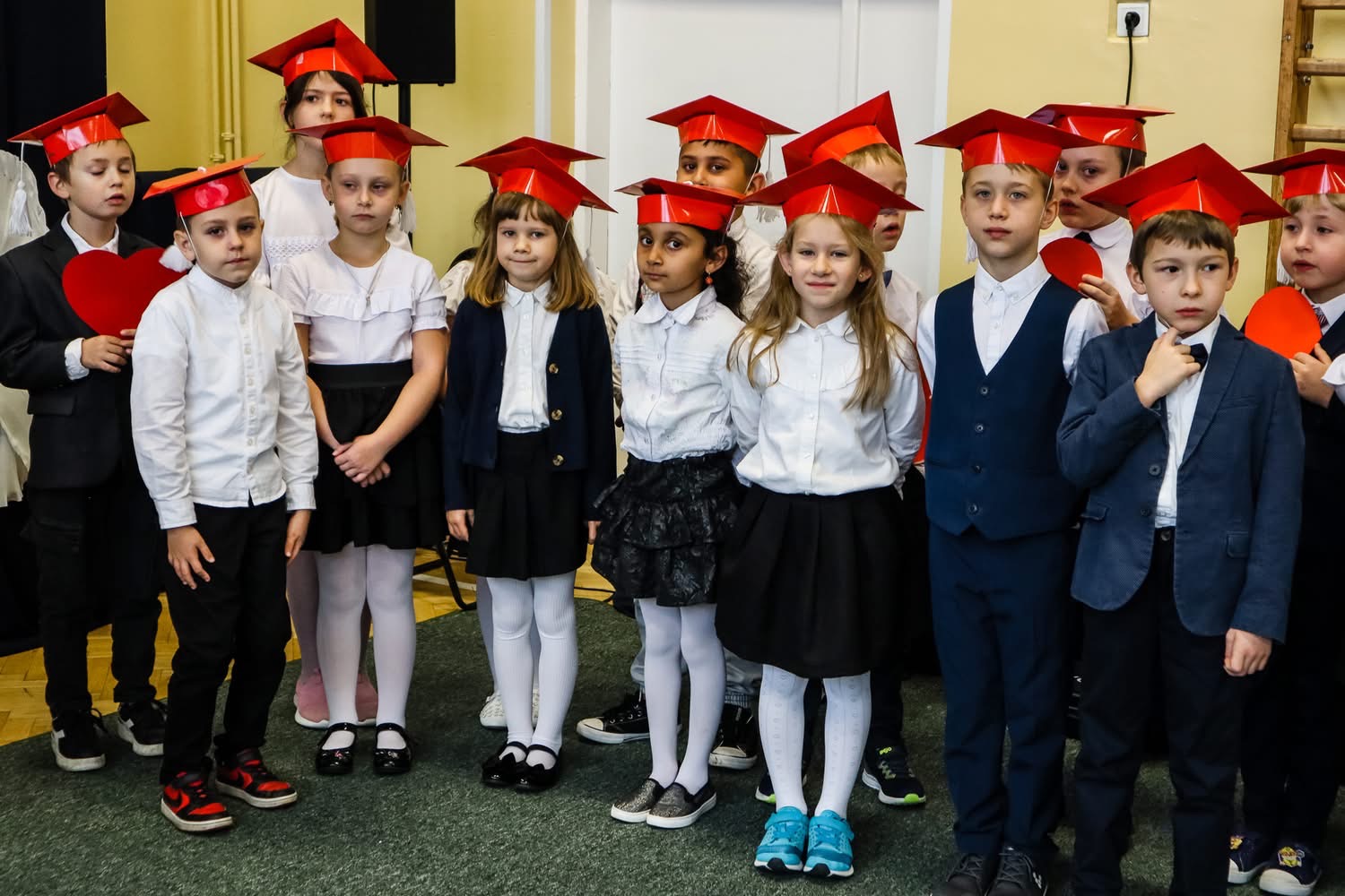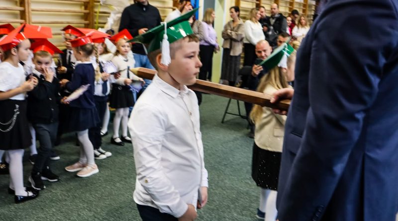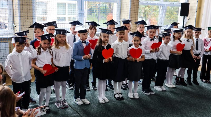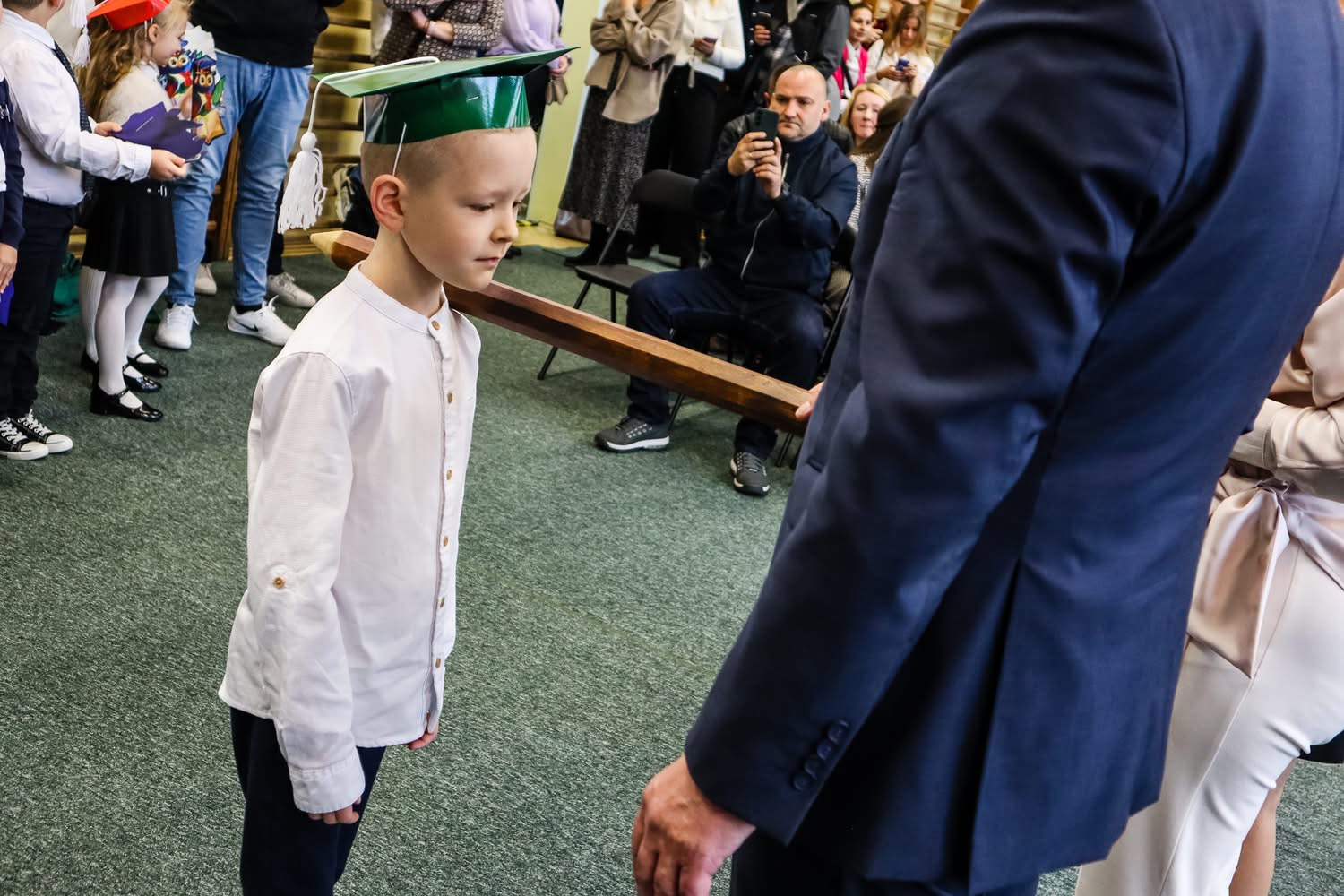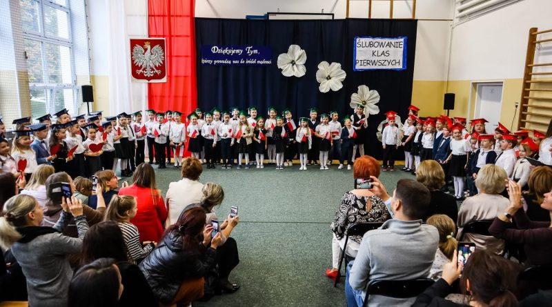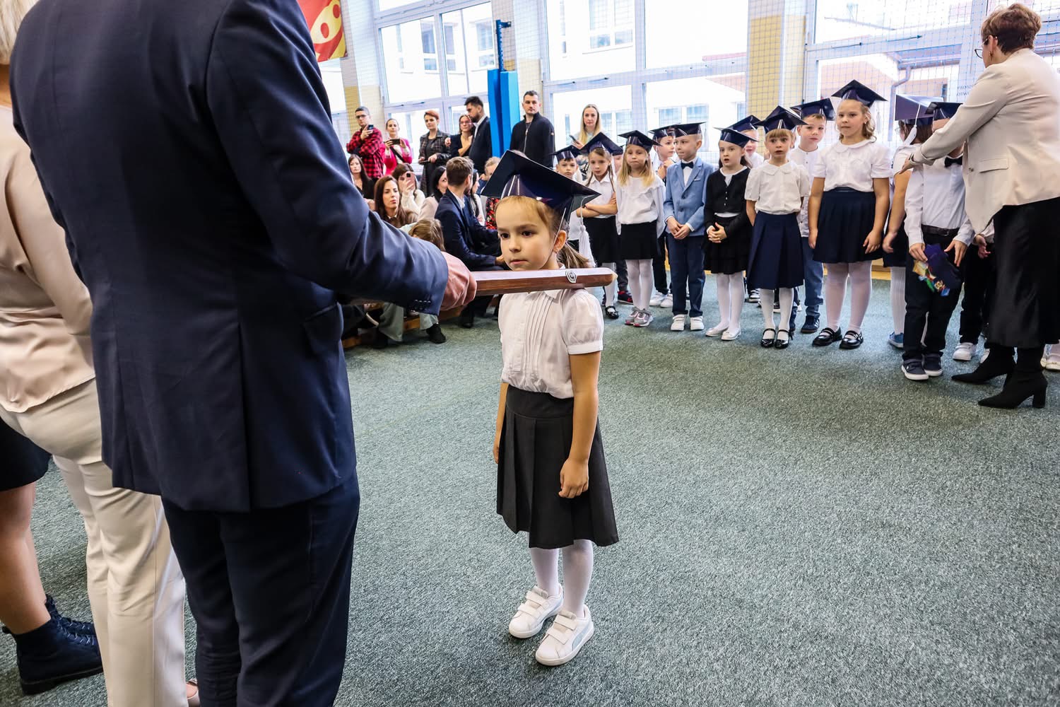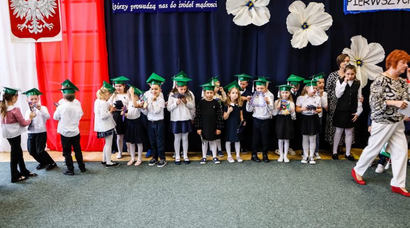 Te słowa wypowiedziały wszystkie pierwszaki w czasie uroczystości na sali gimnastycznej w dniu 14 października 2025 r. Dzieci recytowały również wiersze i śpiewały piosenki o tematyce szkolnej i patriotycznej.