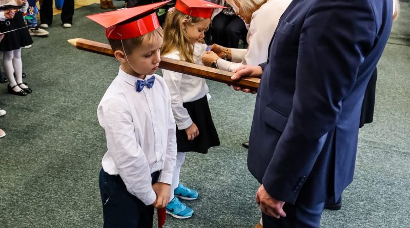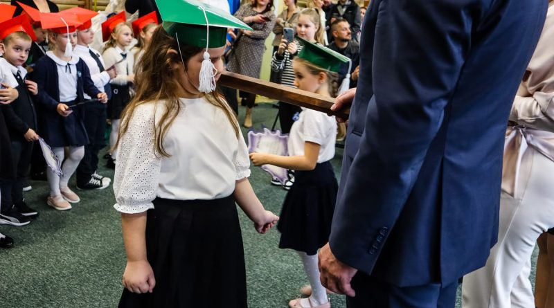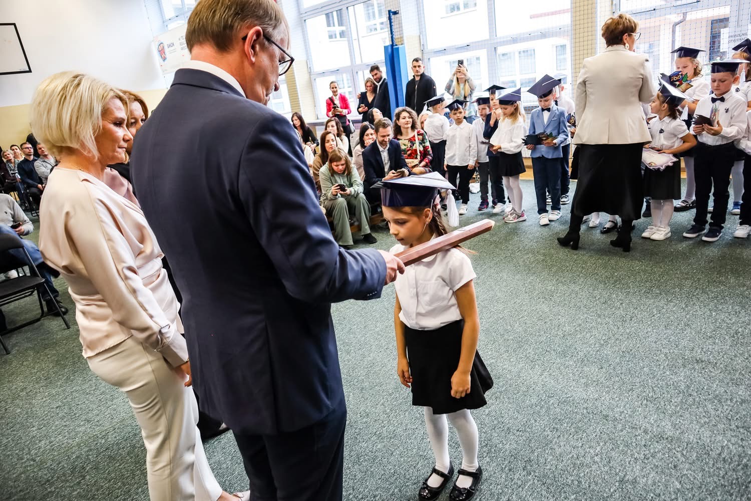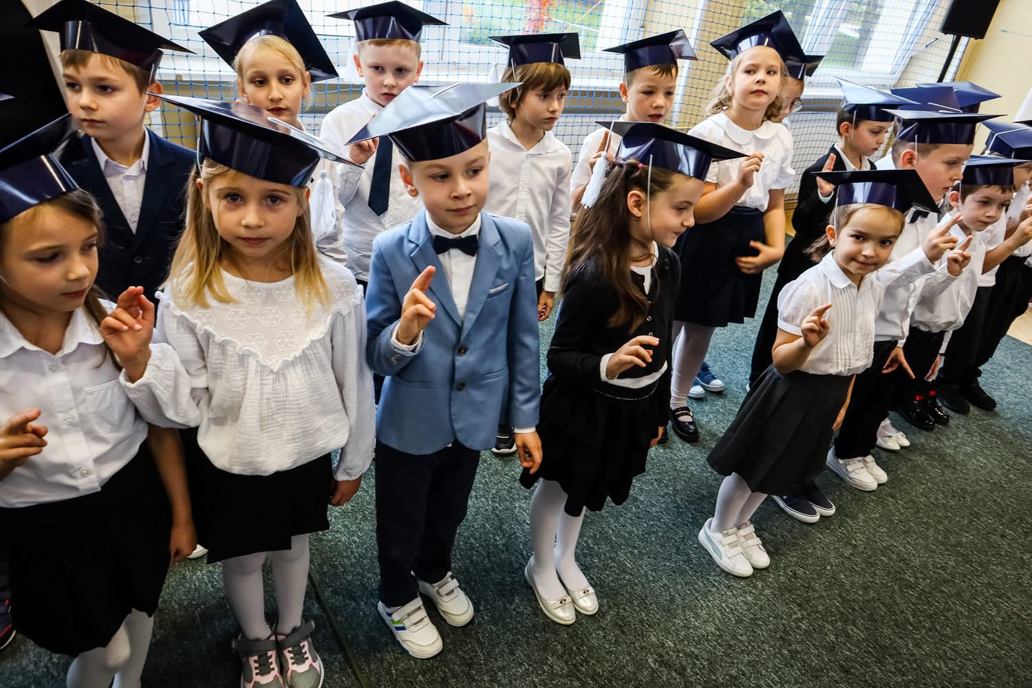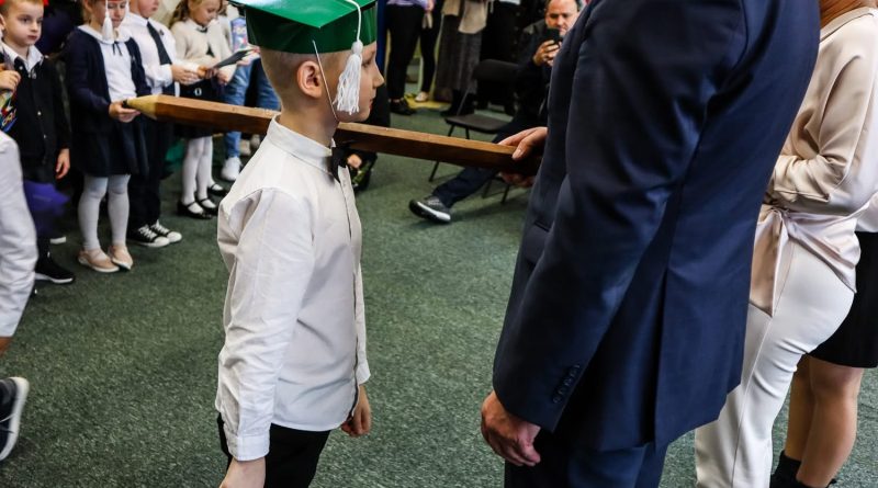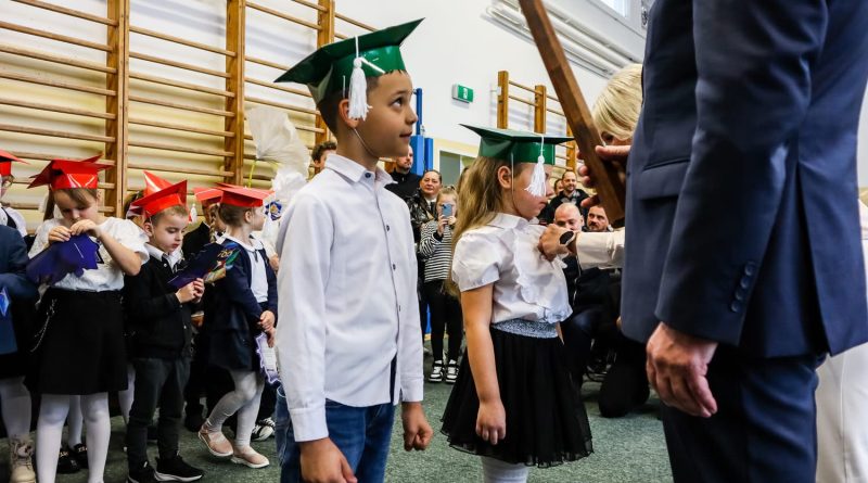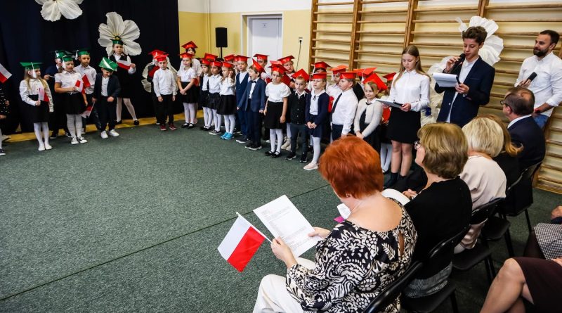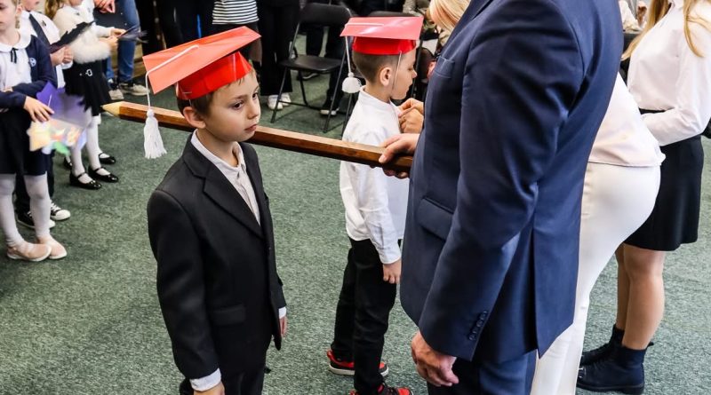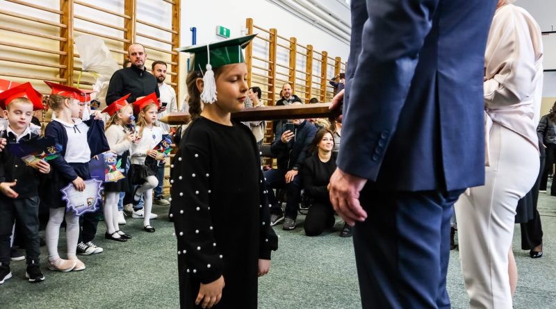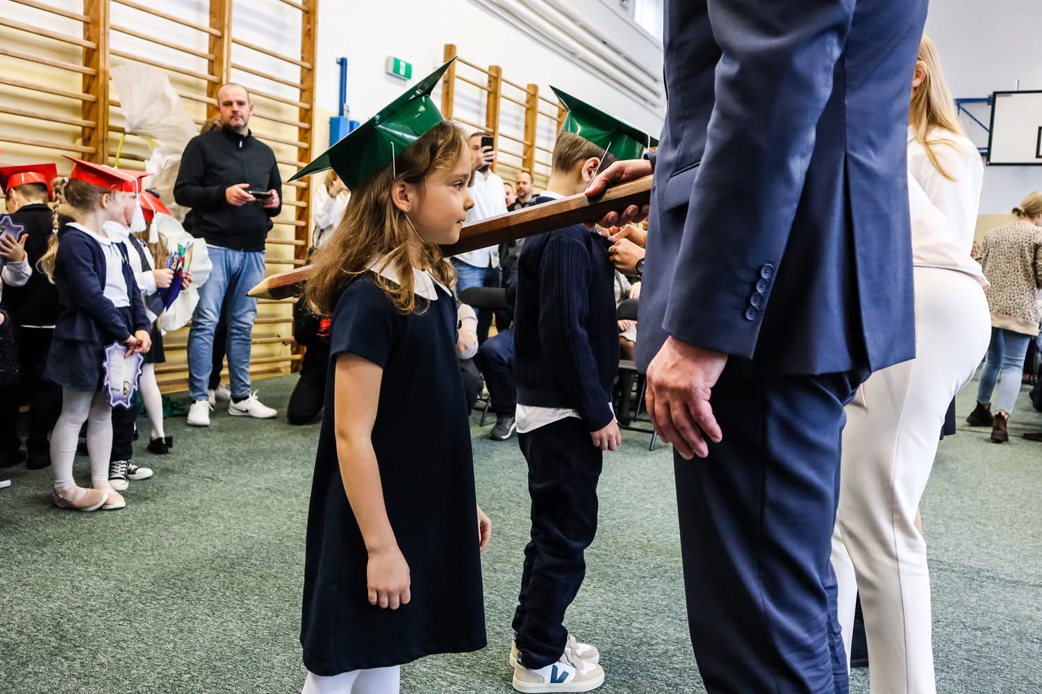 Te słowa wypowiedziały wszystkie pierwszaki w czasie uroczystości na sali gimnastycznej w dniu 14 października 2025 r. Dzieci recytowały również wiersze i śpiewały piosenki o tematyce szkolnej i patriotycznej.