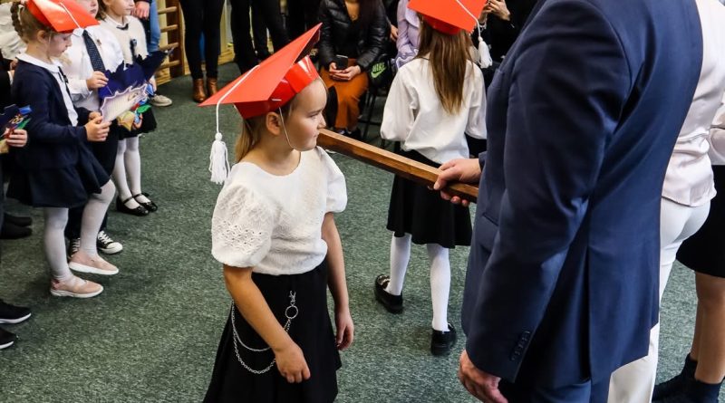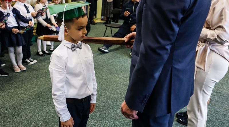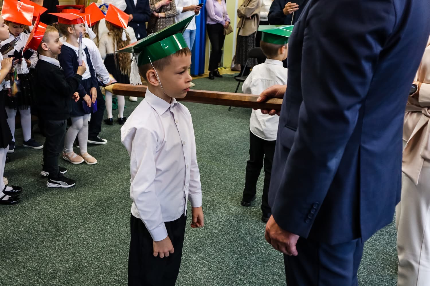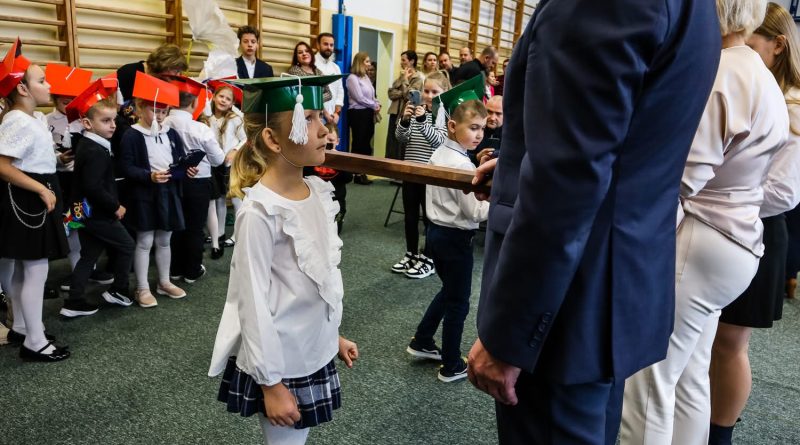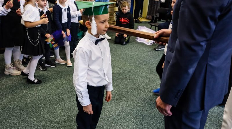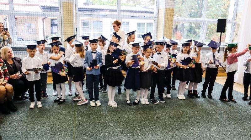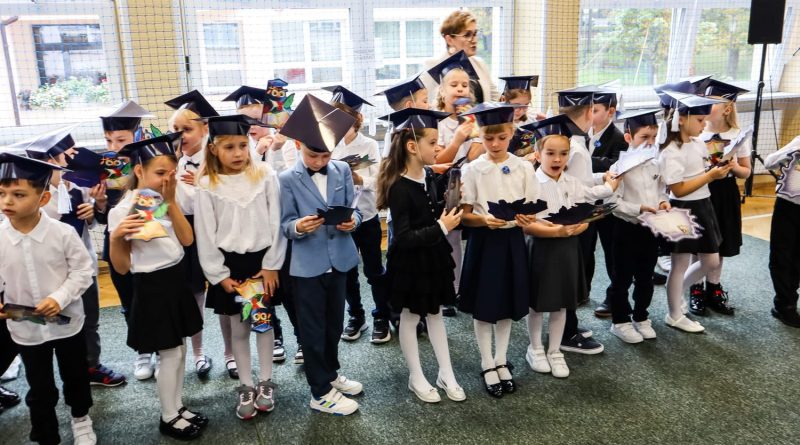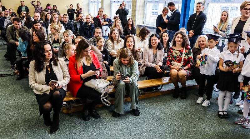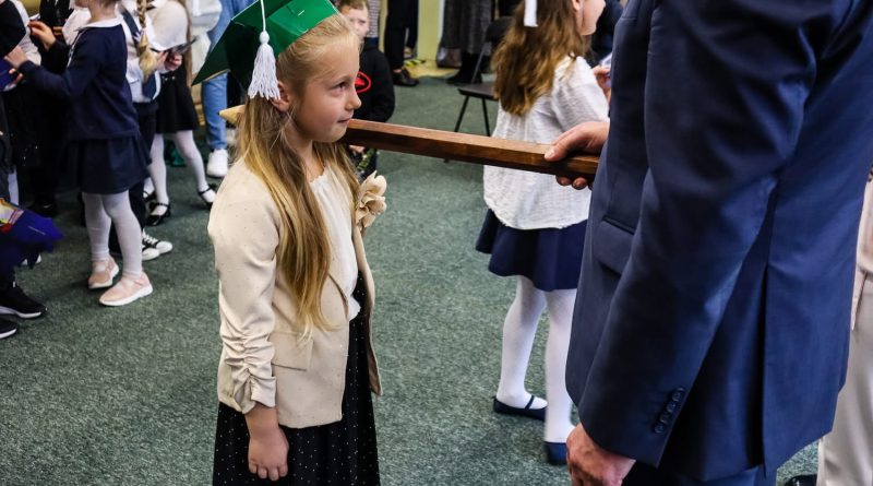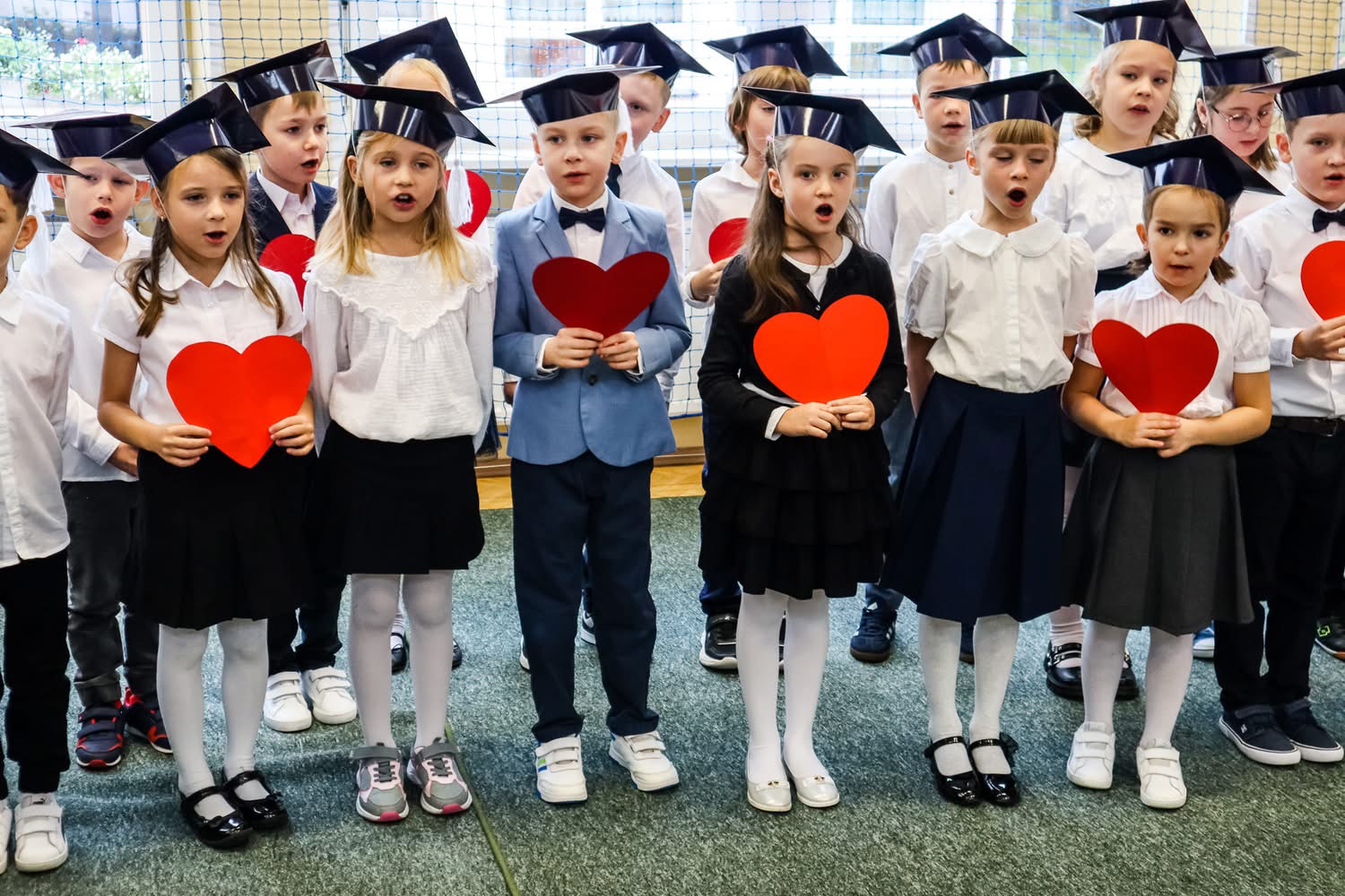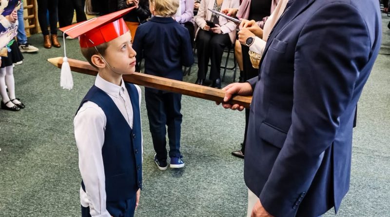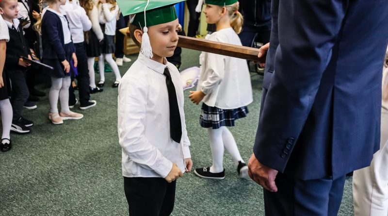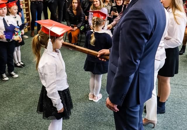 Te słowa wypowiedziały wszystkie pierwszaki w czasie uroczystości na sali gimnastycznej w dniu 14 października 2025 r. Dzieci recytowały również wiersze i śpiewały piosenki o tematyce szkolnej i patriotycznej.