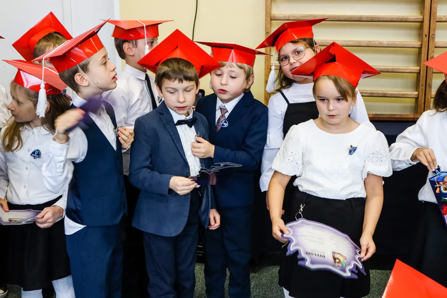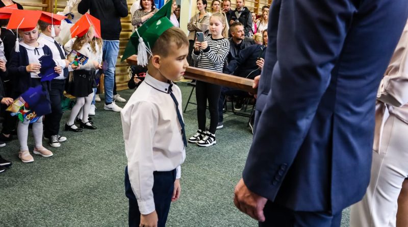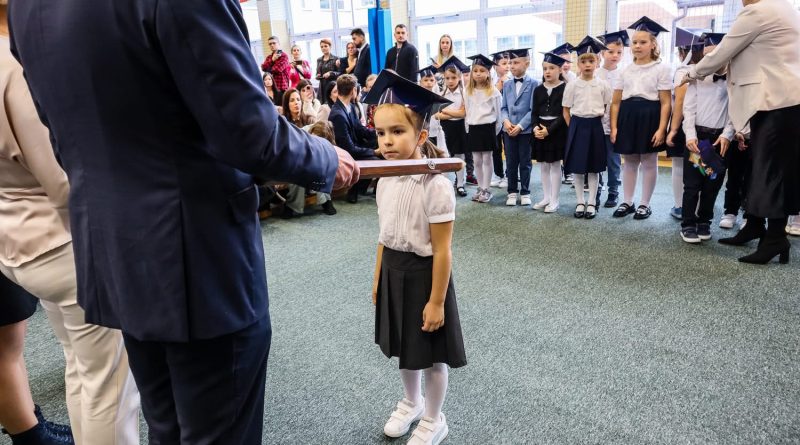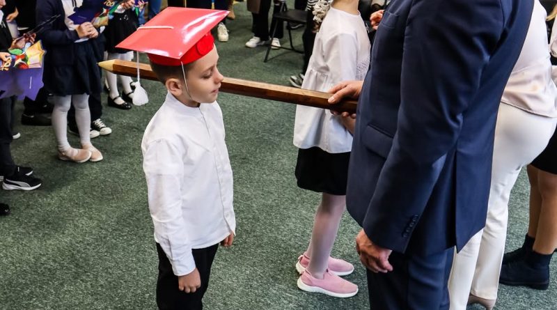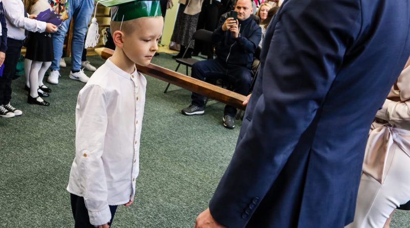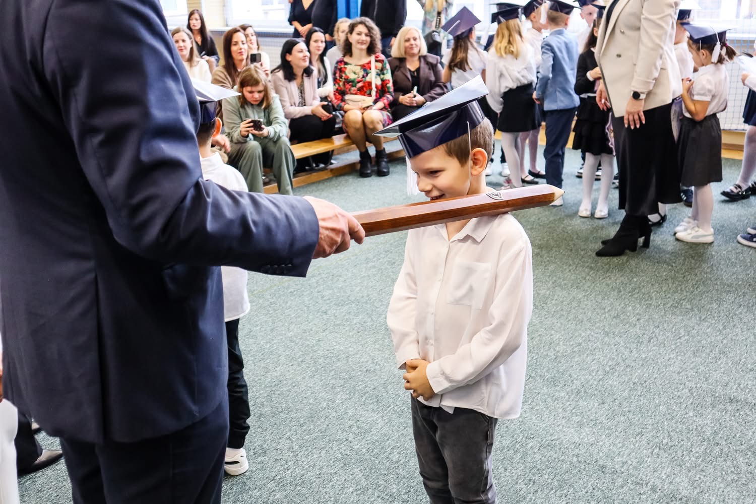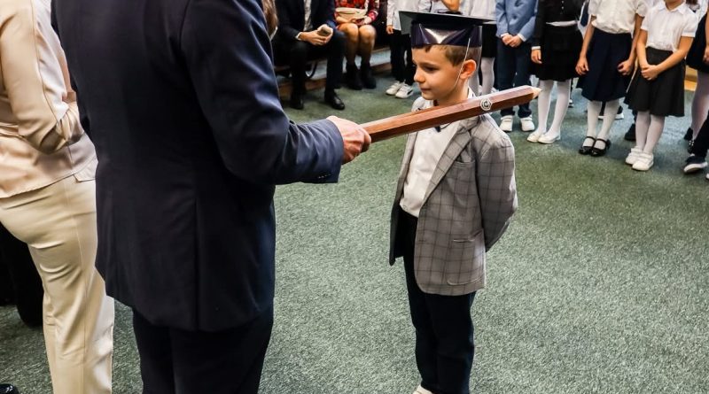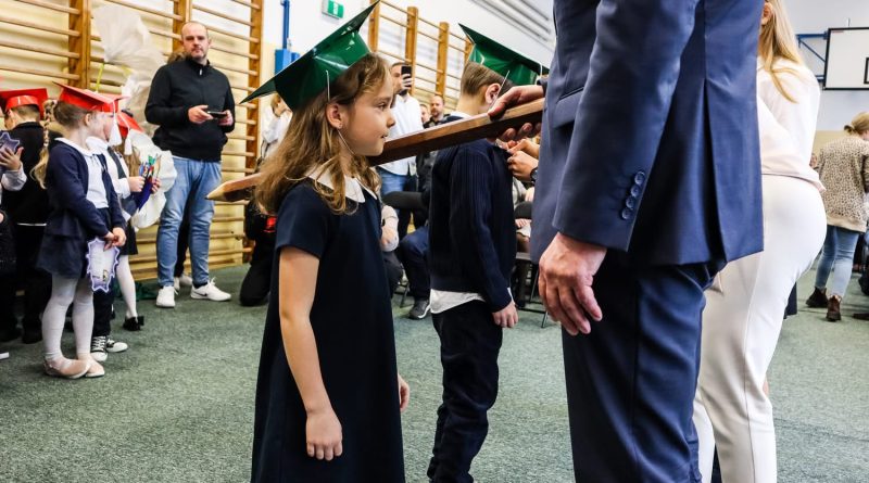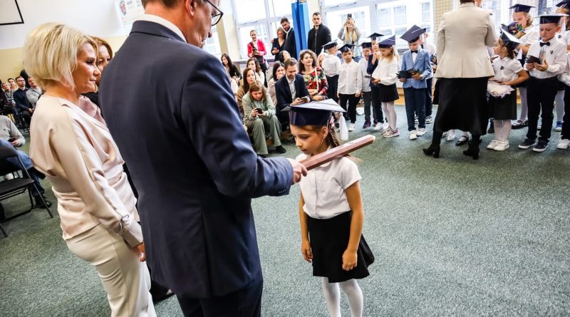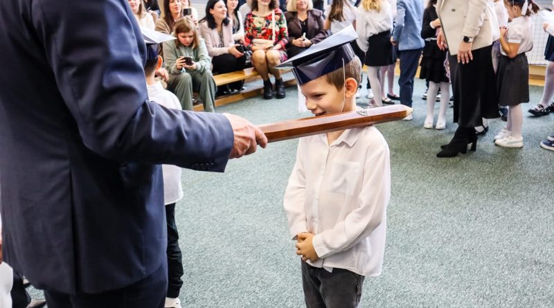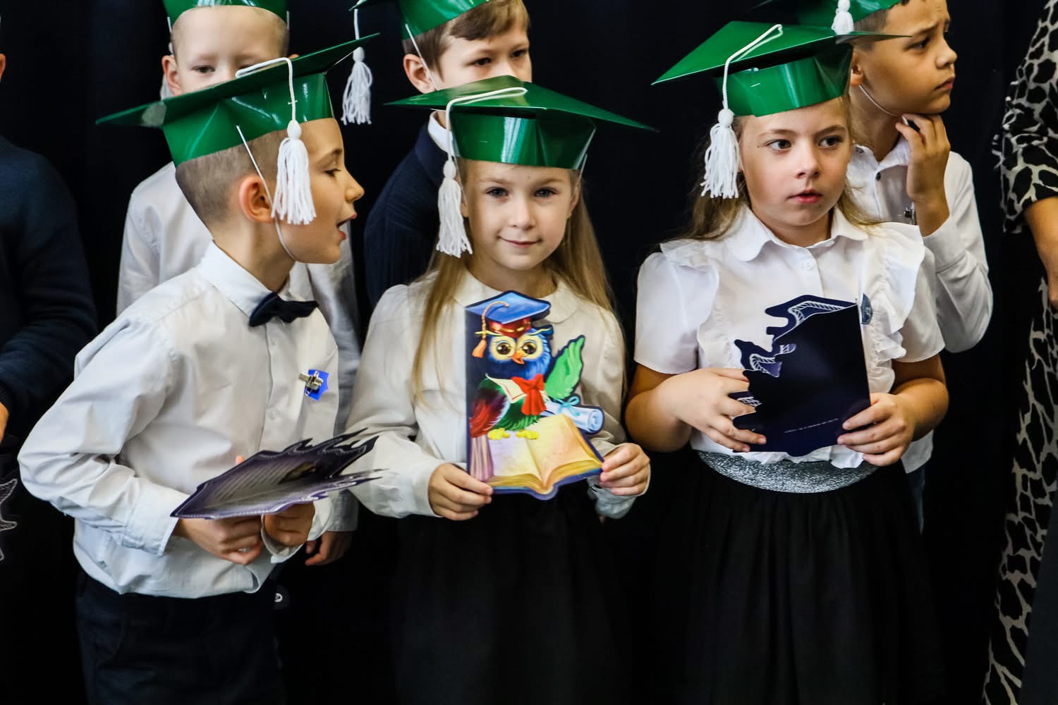 Te słowa wypowiedziały wszystkie pierwszaki w czasie uroczystości na sali gimnastycznej w dniu 14 października 2025 r. Dzieci recytowały również wiersze i śpiewały piosenki o tematyce szkolnej i patriotycznej.