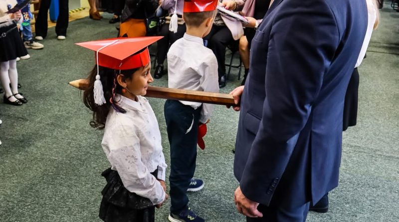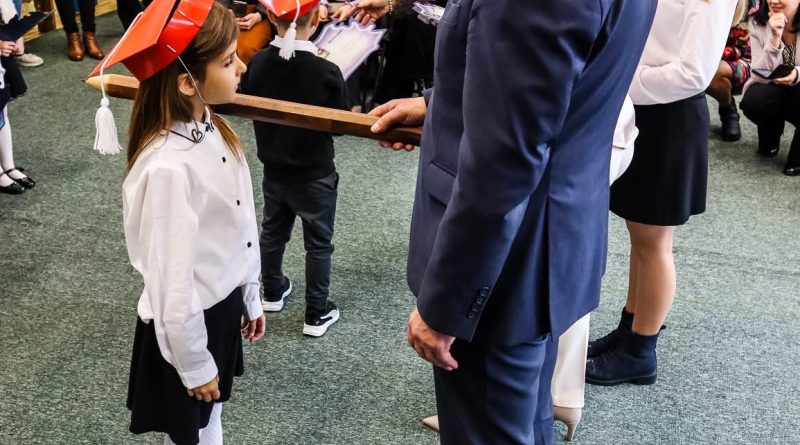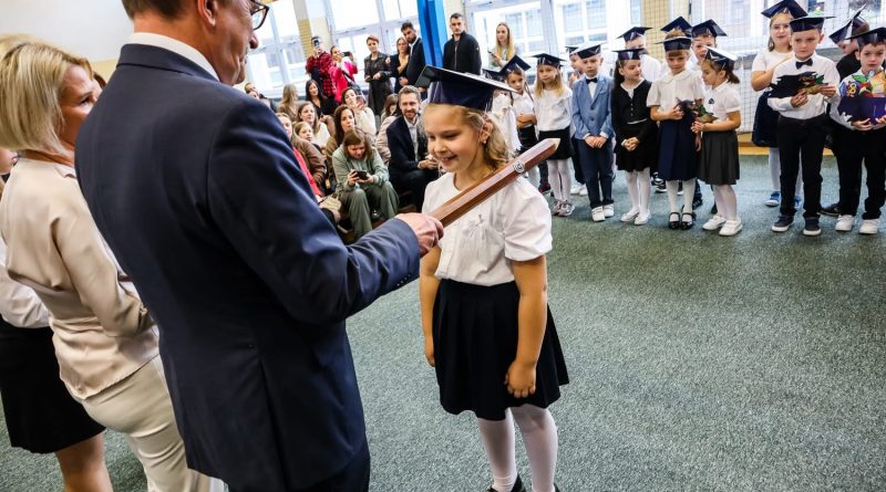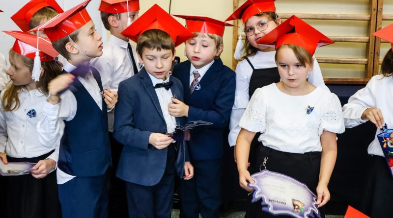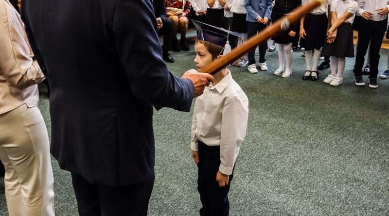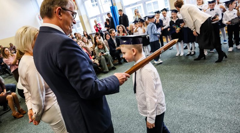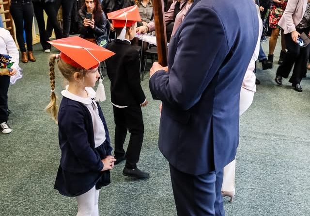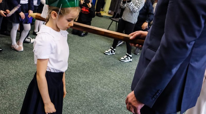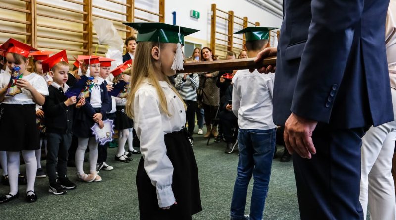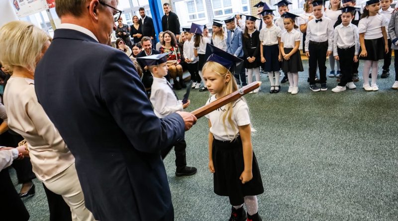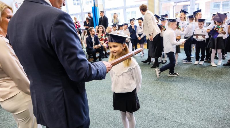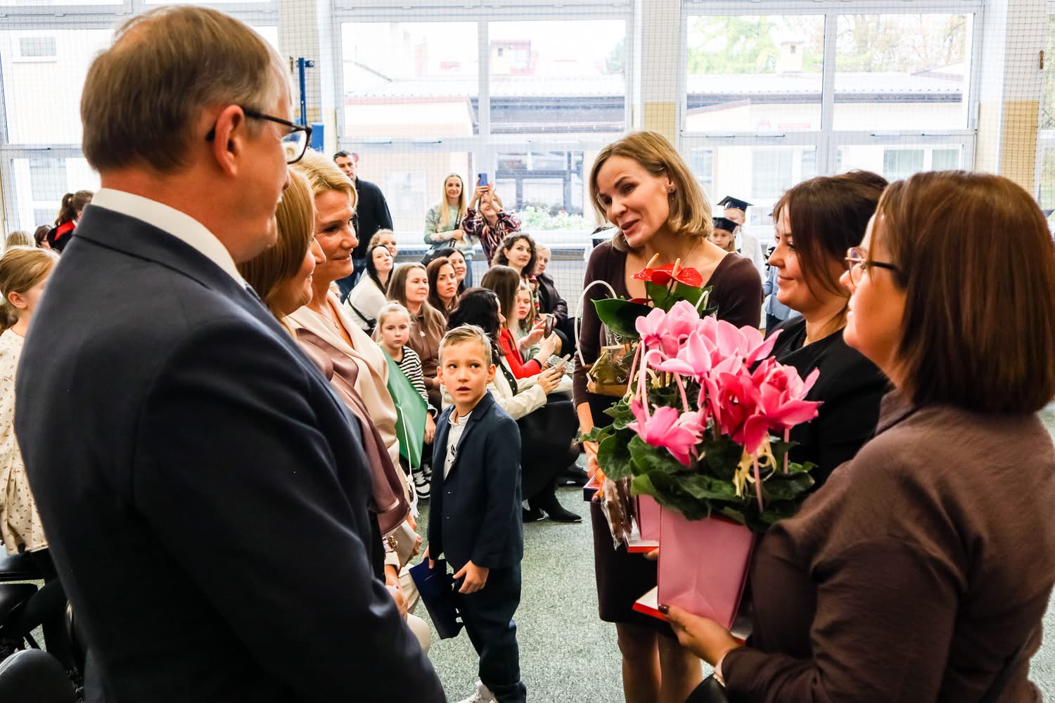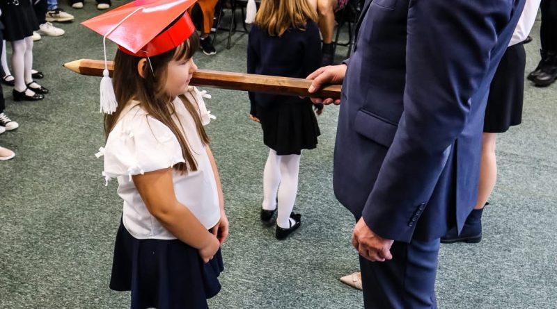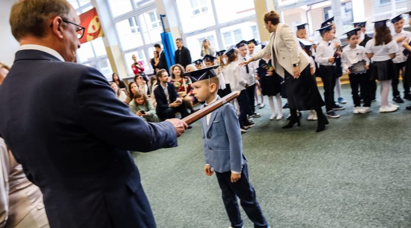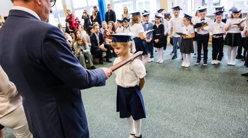 Te słowa wypowiedziały wszystkie pierwszaki w czasie uroczystości na sali gimnastycznej w dniu 14 października 2025 r. Dzieci recytowały również wiersze i śpiewały piosenki o tematyce szkolnej i patriotycznej.