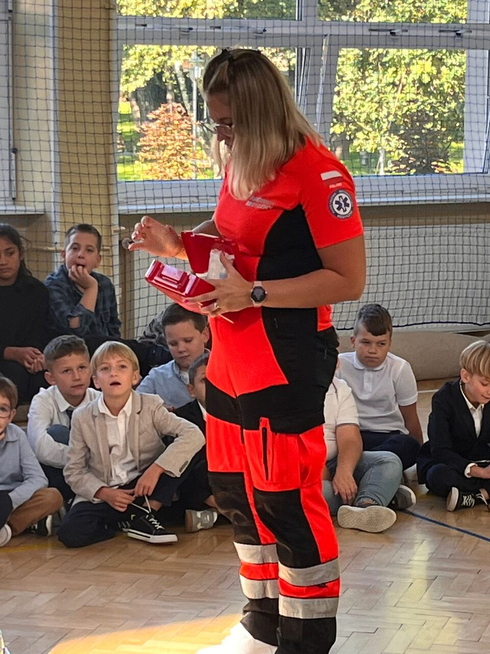 Dodatkowo uczniowie uzyskali wiele ciekawych informacji o codziennej pracy ratownika medycznego – poznali obowiązki tej profesji, sprzęt wykorzystywany podczas akcji ratunkowych oraz wyzwania, z którymi ratownicy mierzą się na co dzień. Zostali również zapoznani z podstawowym wyposażeniem apteczki pierwszej pomocy i dowiedzieli się, do czego służą poszczególne elementy. 💊💉
