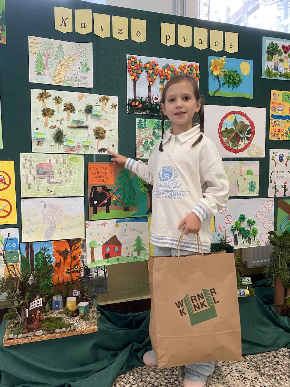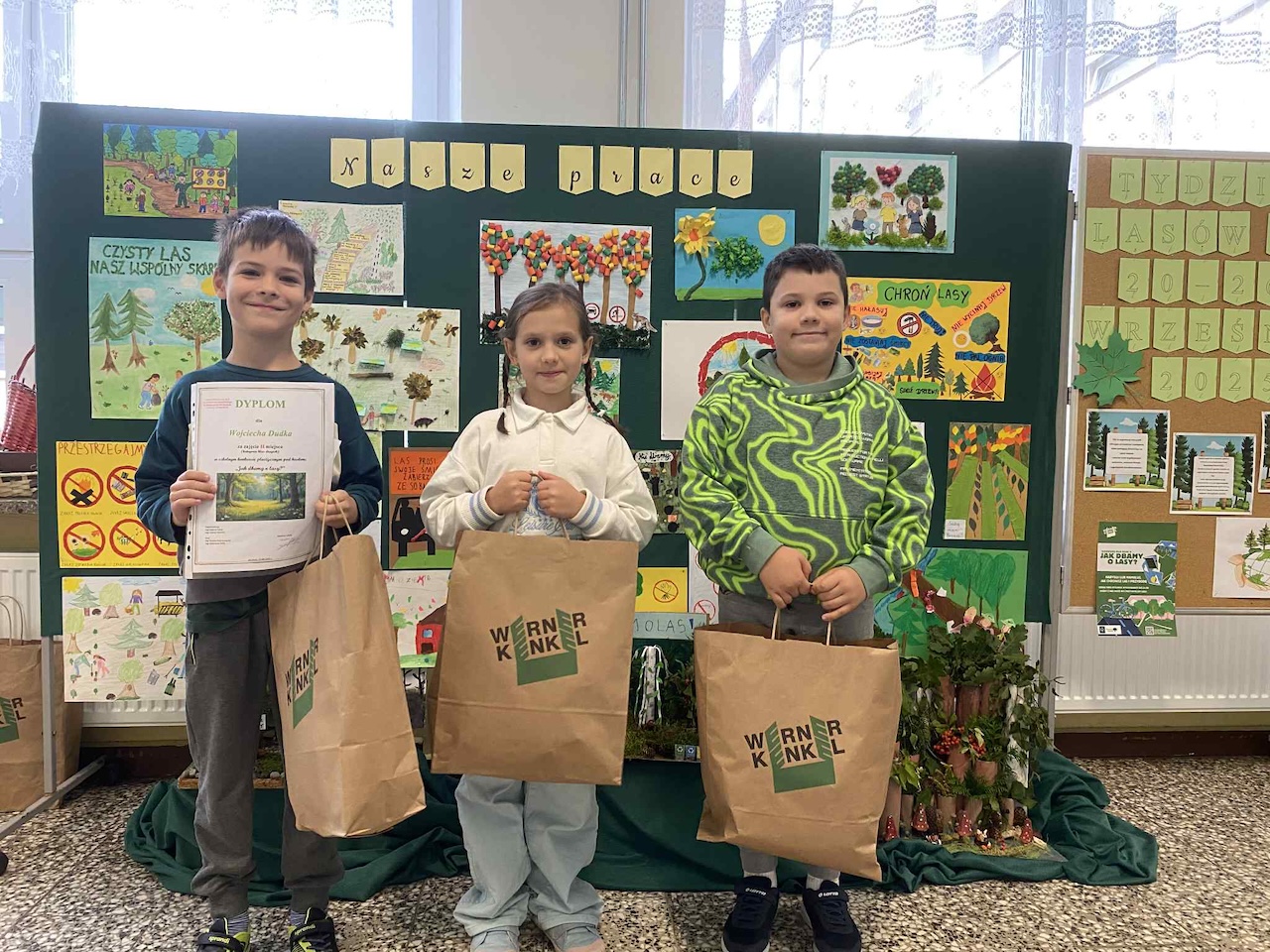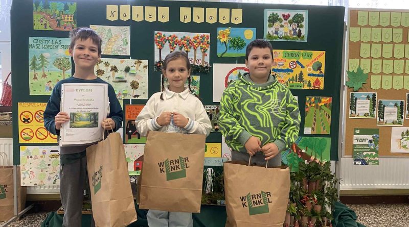 z obchodami Tygodnia Lasów FSC – międzynarodowej inicjatywy promującej odpowiedzialną gospodarkę leśną. Obie akcje, choć różne w formie, łączy wspólny cel: troska o środowisko, przeciwdziałanie zmianom klimatycznym i budowanie świadomości ekologicznej już od najmłodszych lat. Z tej okazji firma Werner Kenkel w Bochni zaprosiła naszą szkołę do udziału w wyjątkowym projekcie edukacyjnym. W ramach obchodów Tygodnia Lasów FSC przeprowadzono w klasach drugich konkurs pod hasłem „Jak dbamy o lasy”. Udział wzięło w nim aż 28 uczniów, co pokazało, jak duże zainteresowanie wzbudziła ta tematyka. Jury przyznało trzy nagrody główne