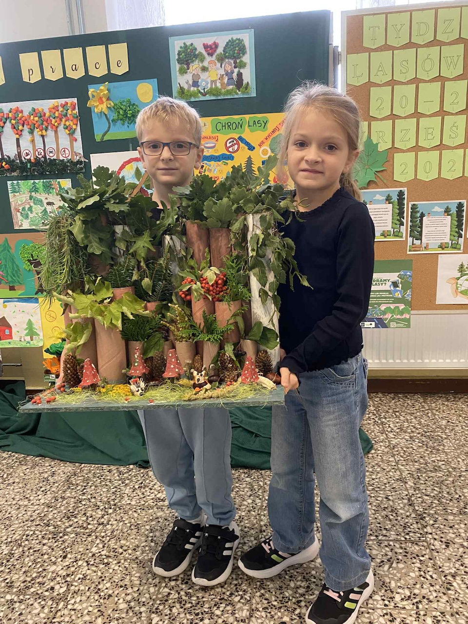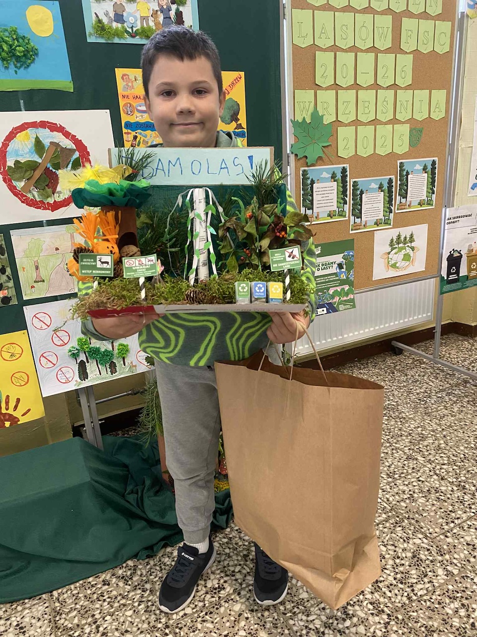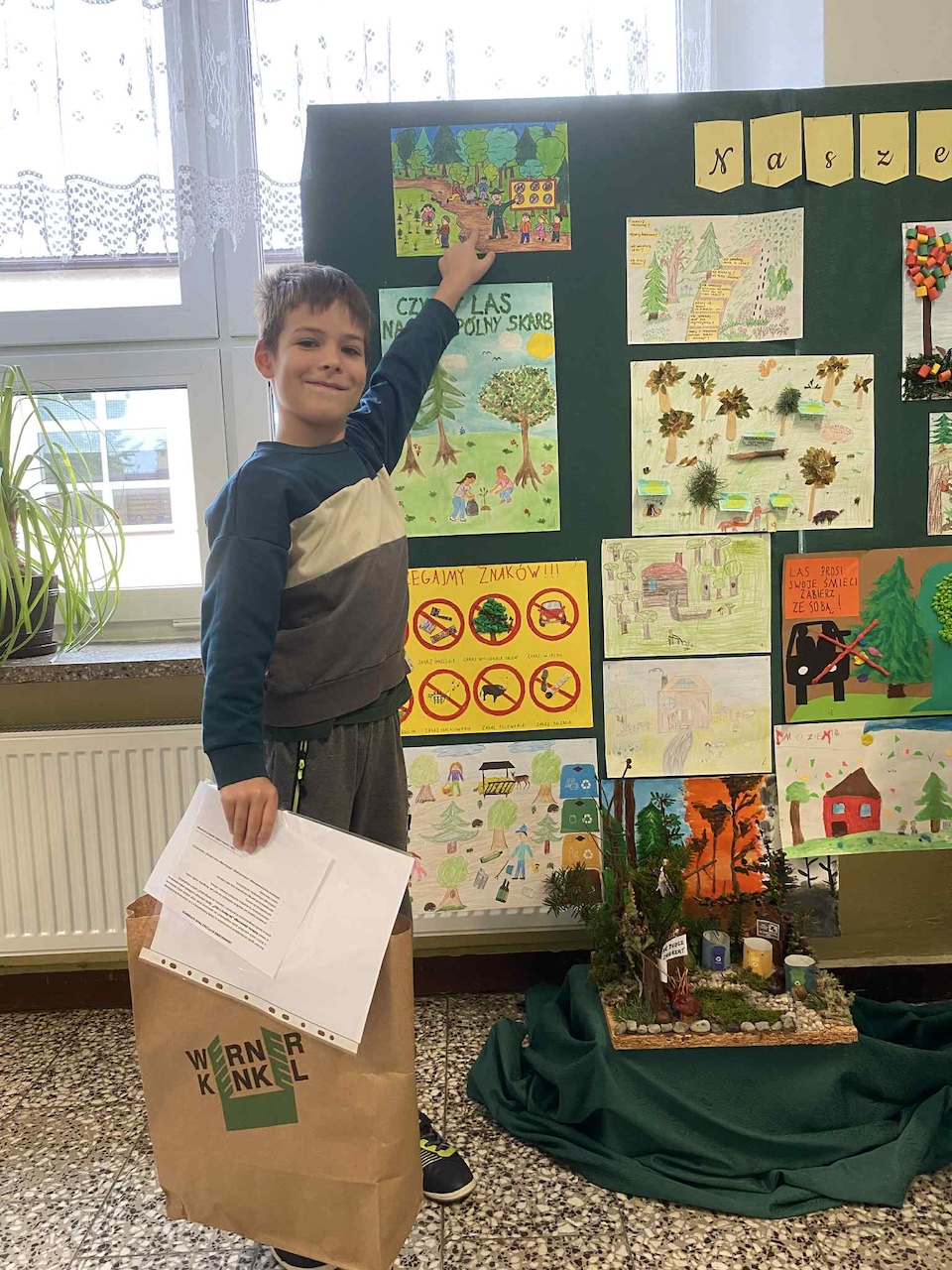 z obchodami Tygodnia Lasów FSC – międzynarodowej inicjatywy promującej odpowiedzialną gospodarkę leśną. Obie akcje, choć różne w formie, łączy wspólny cel: troska o środowisko, przeciwdziałanie zmianom klimatycznym i budowanie świadomości ekologicznej już od najmłodszych lat. Z tej okazji firma Werner Kenkel w Bochni zaprosiła naszą szkołę do udziału w wyjątkowym projekcie edukacyjnym. W ramach obchodów Tygodnia Lasów FSC przeprowadzono w klasach drugich konkurs pod hasłem „Jak dbamy o lasy”. Udział wzięło w nim aż 28 uczniów, co pokazało, jak duże zainteresowanie wzbudziła ta tematyka. Jury przyznało trzy nagrody główne