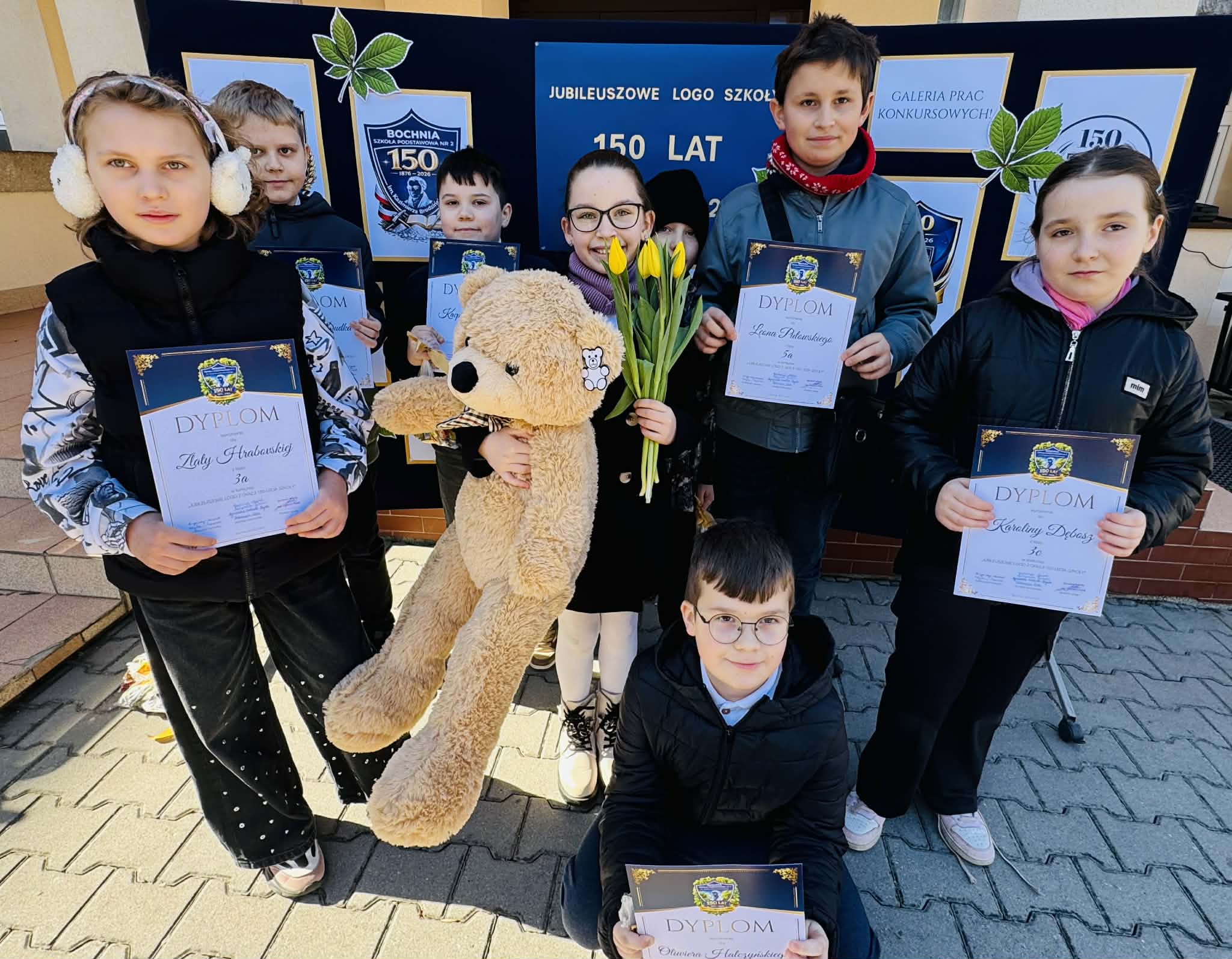 Pozostali uczestnicy konkursu – Karolina, Kacper, Zlata, Leon, Oliwier, Wiktor i Kacper – również zostali nagrodzeni. Otrzymali pamiątkowe dyplomy oraz słodkie łakocie ufundowane przez Radę Rodziców, które były wyrazem uznania za ich wyjątkową pracę, pomysłowość oraz udział w konkursie.