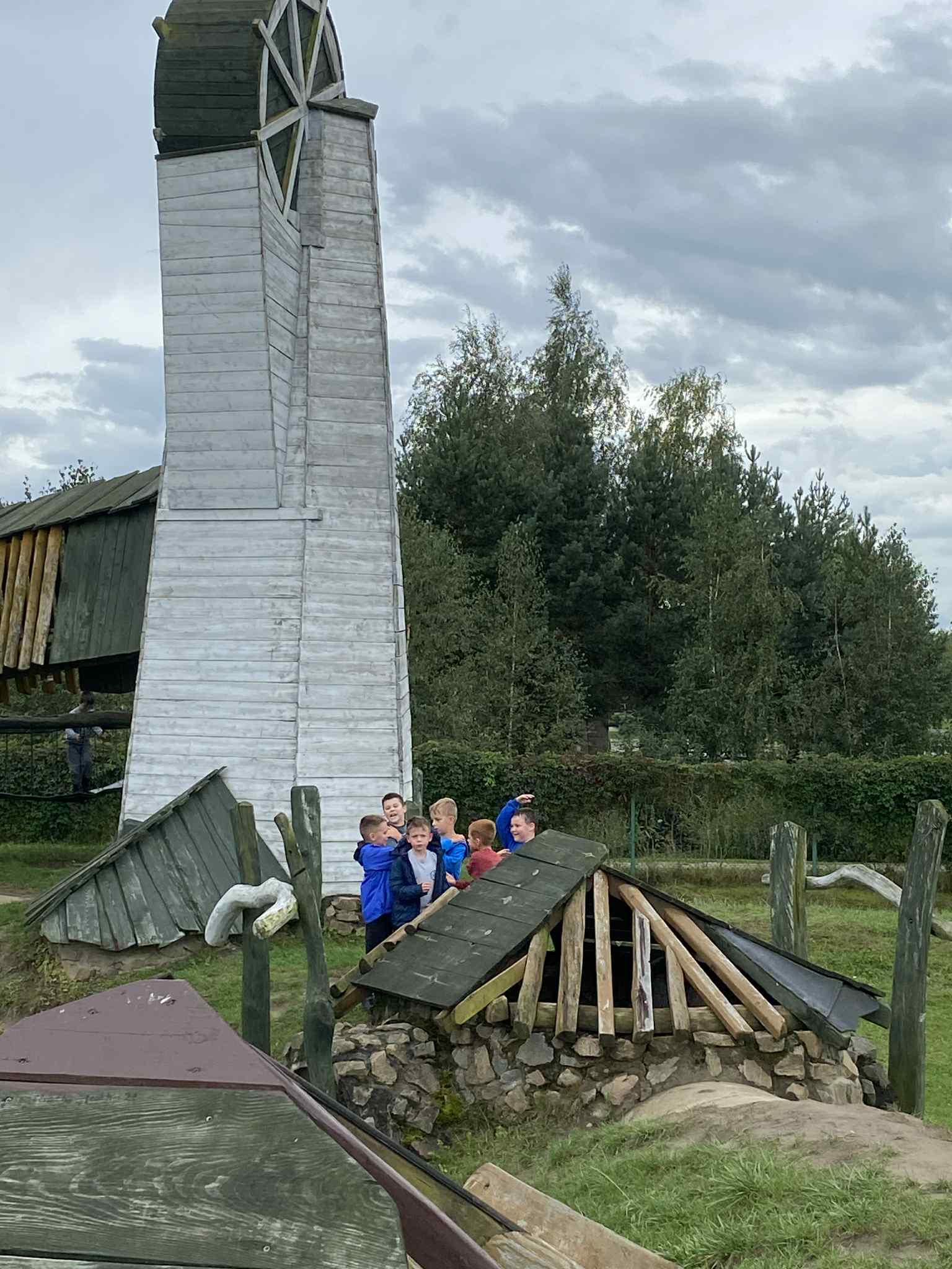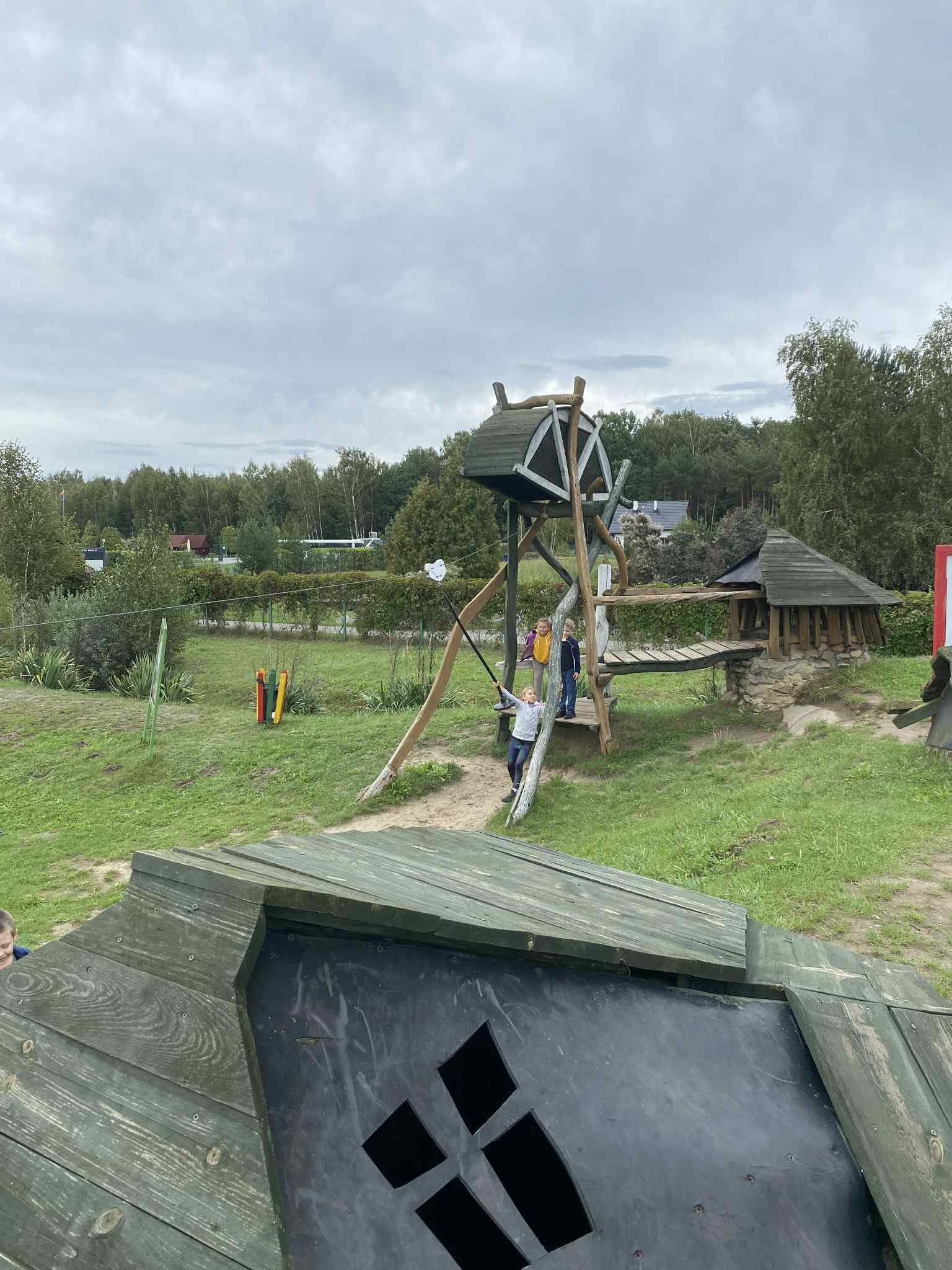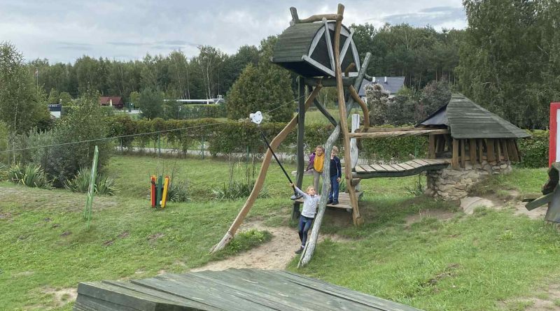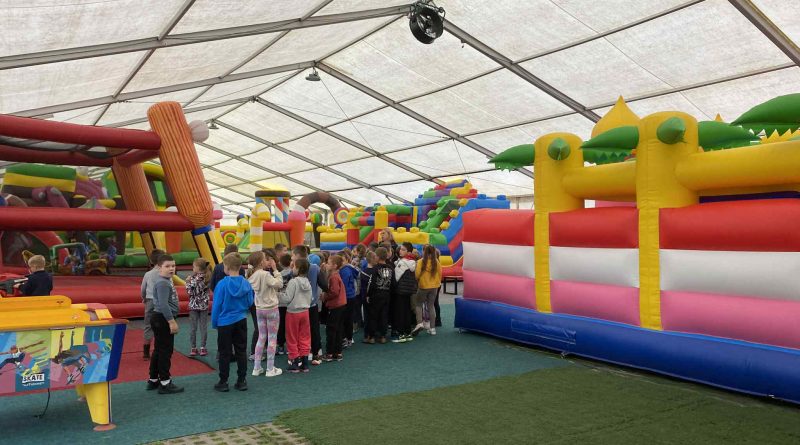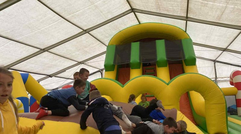 Mimo deszczowej pogody nie zabrakło dobrej zabawy. Uczniowie bawili się w drewnianym zamku