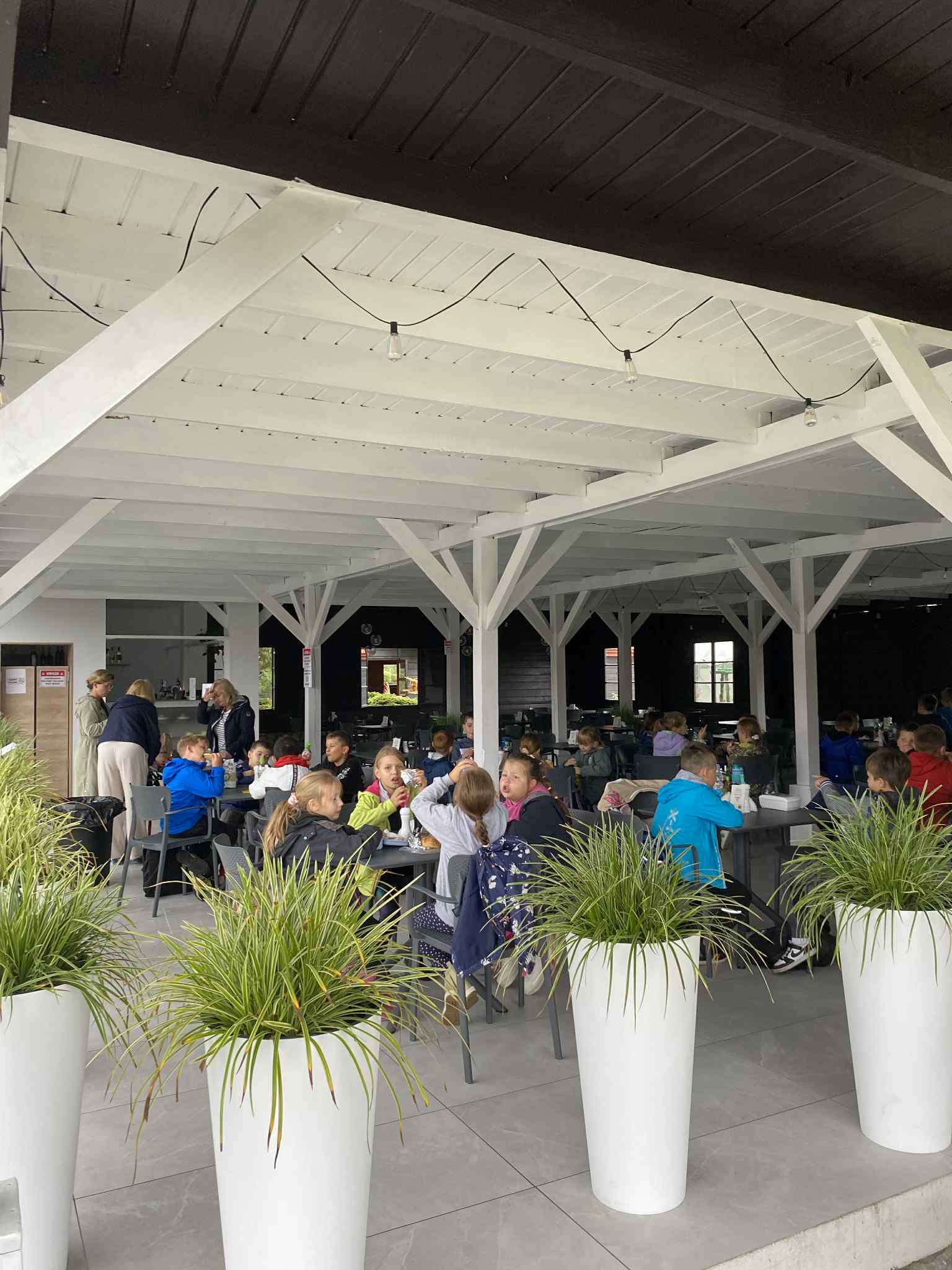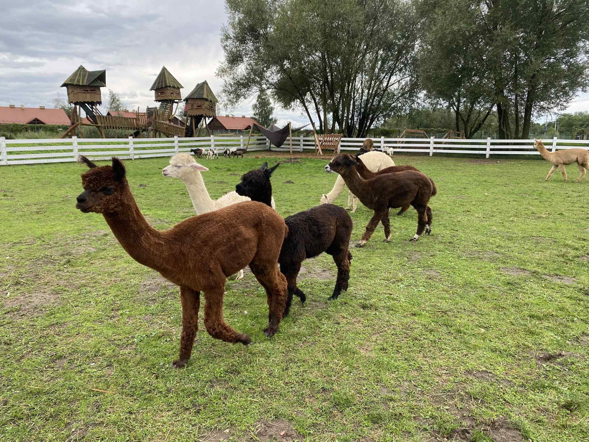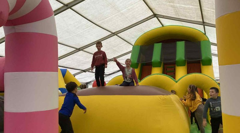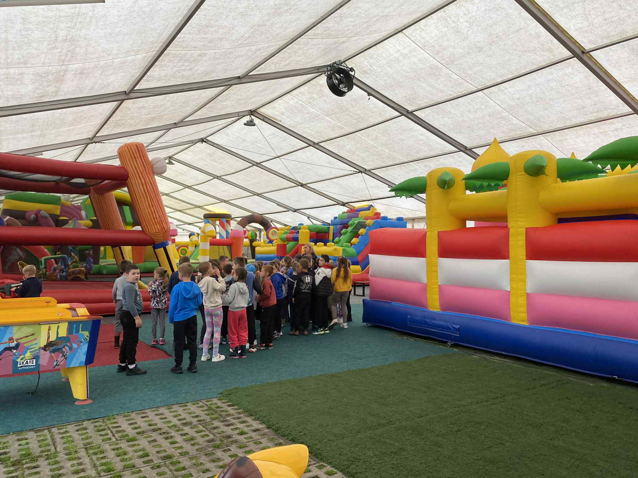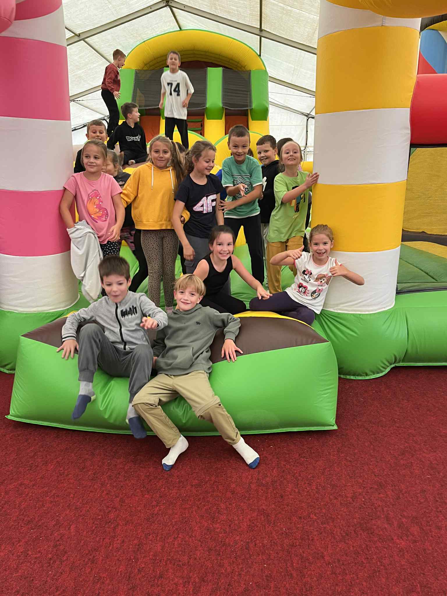 Na drugoklasistów czekało wiele atrakcji – duży plac zabaw, kolejka tyrolska, dmuchańce, a także możliwość zwiedzania zagrody ze zwierzętami. Największym zainteresowaniem cieszyły się sympatyczne alpaki i kolorowe miniaturowe kózki, które można było pogłaskać i podziwiać z bliska.