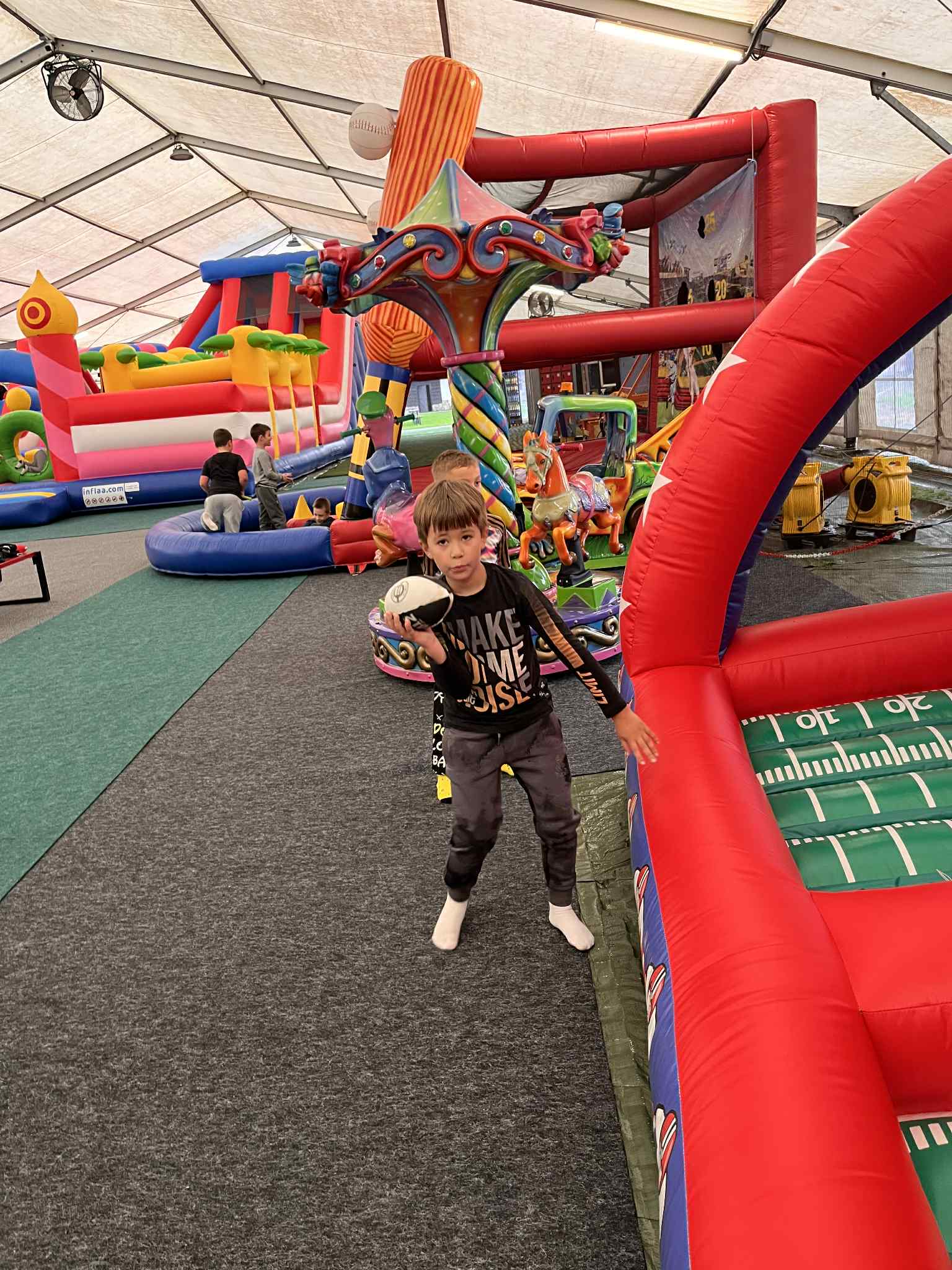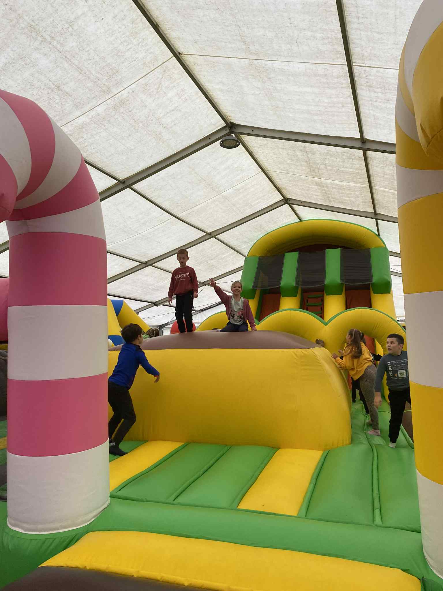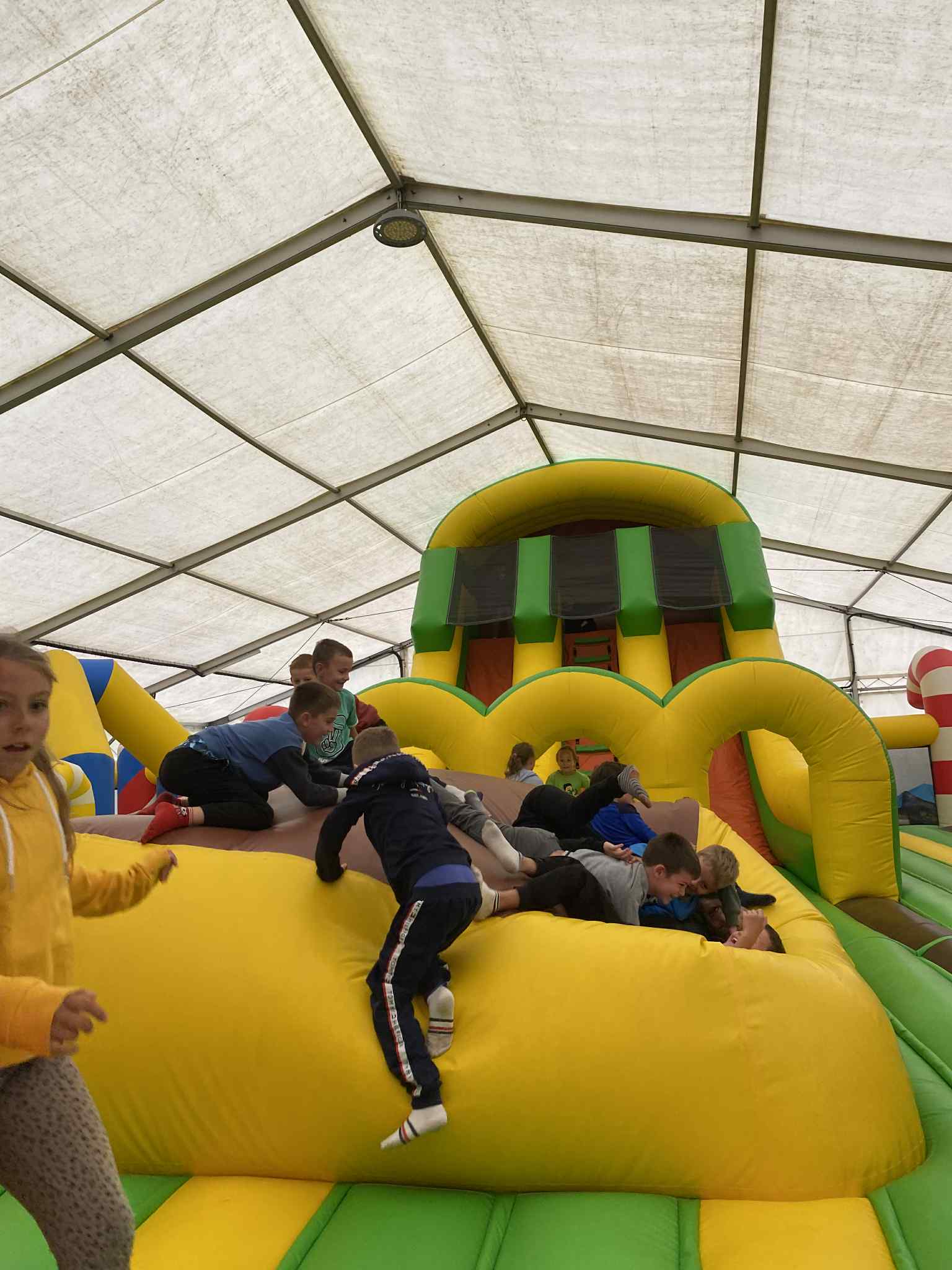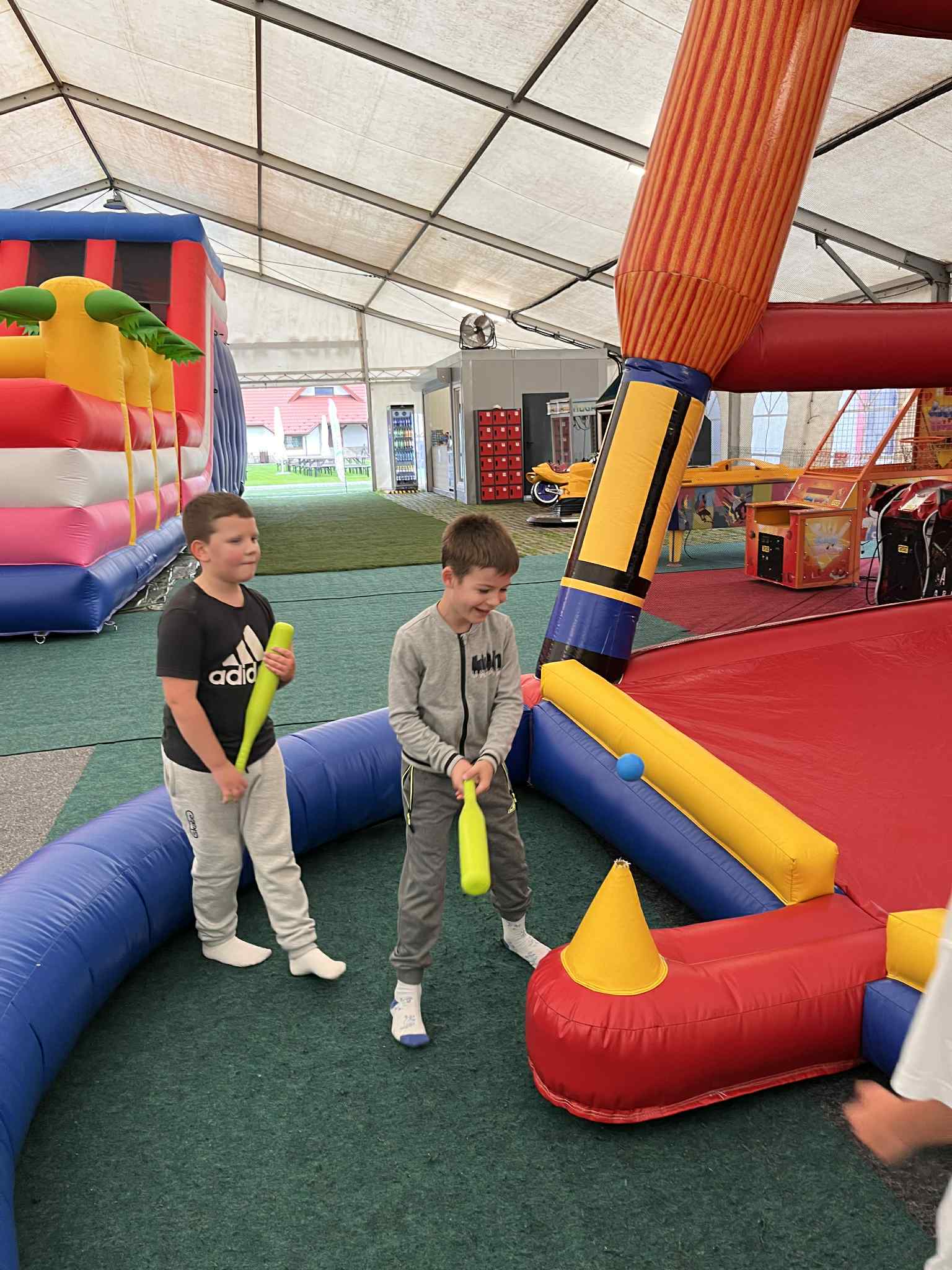 Na drugoklasistów czekało wiele atrakcji – duży plac zabaw, kolejka tyrolska, dmuchańce, a także możliwość zwiedzania zagrody ze zwierzętami. Największym zainteresowaniem cieszyły się sympatyczne alpaki i kolorowe miniaturowe kózki, które można było pogłaskać i podziwiać z bliska.