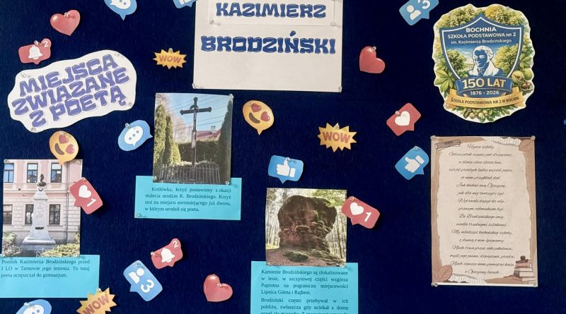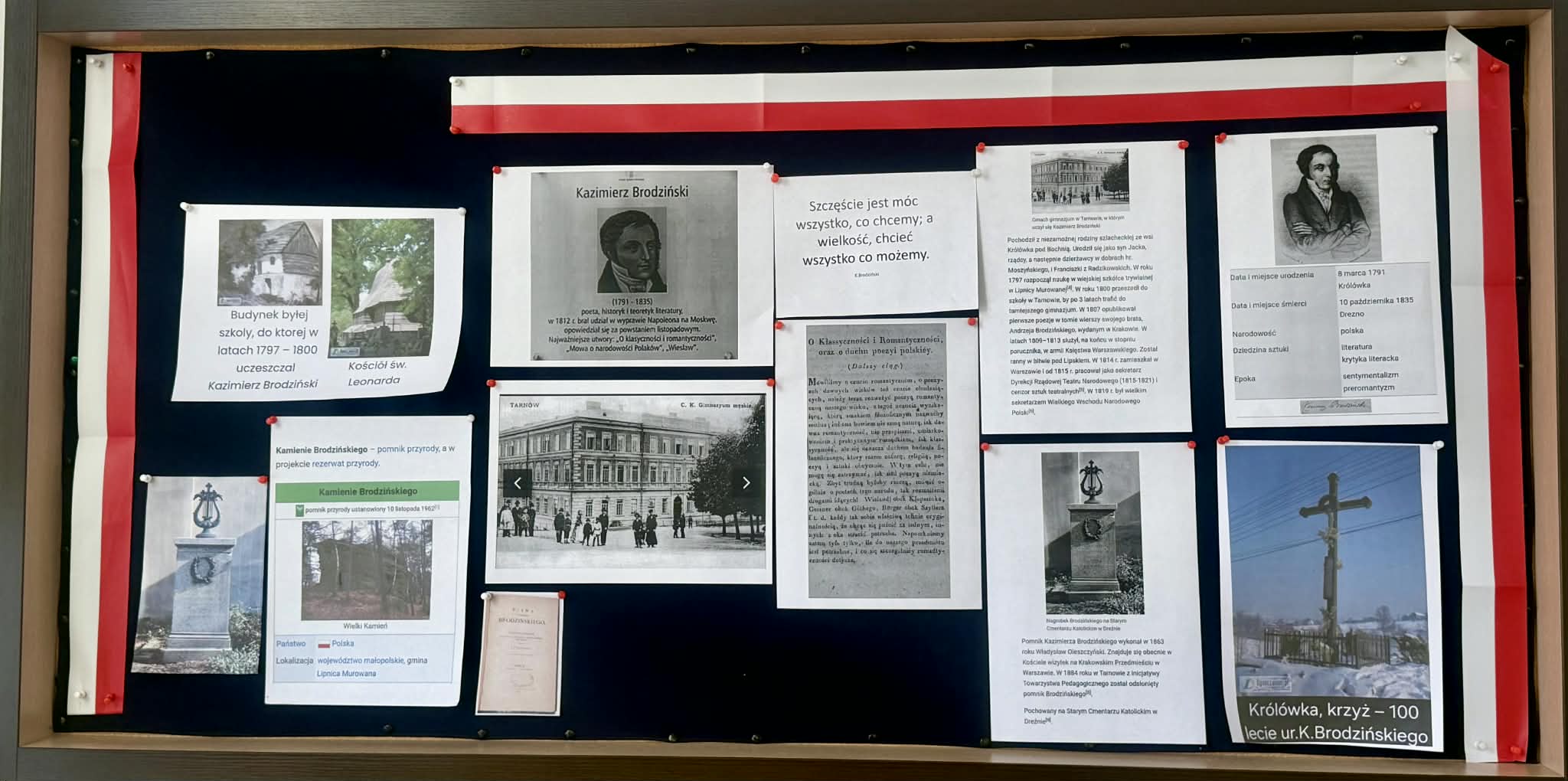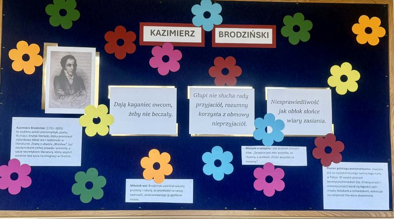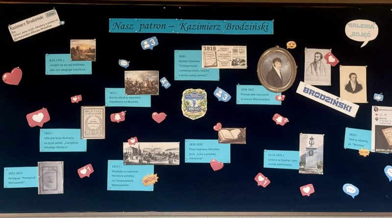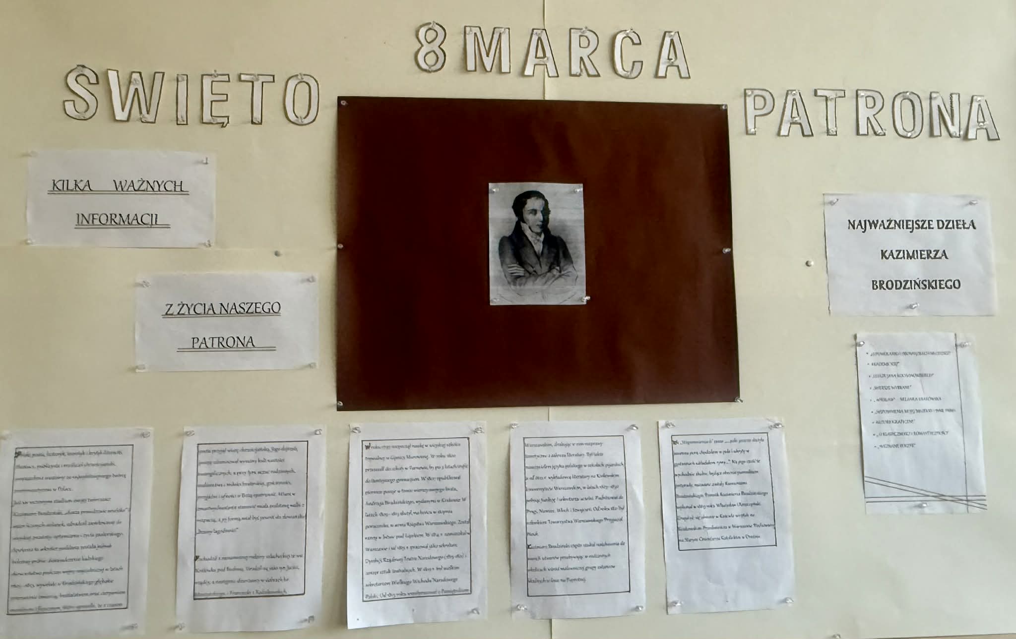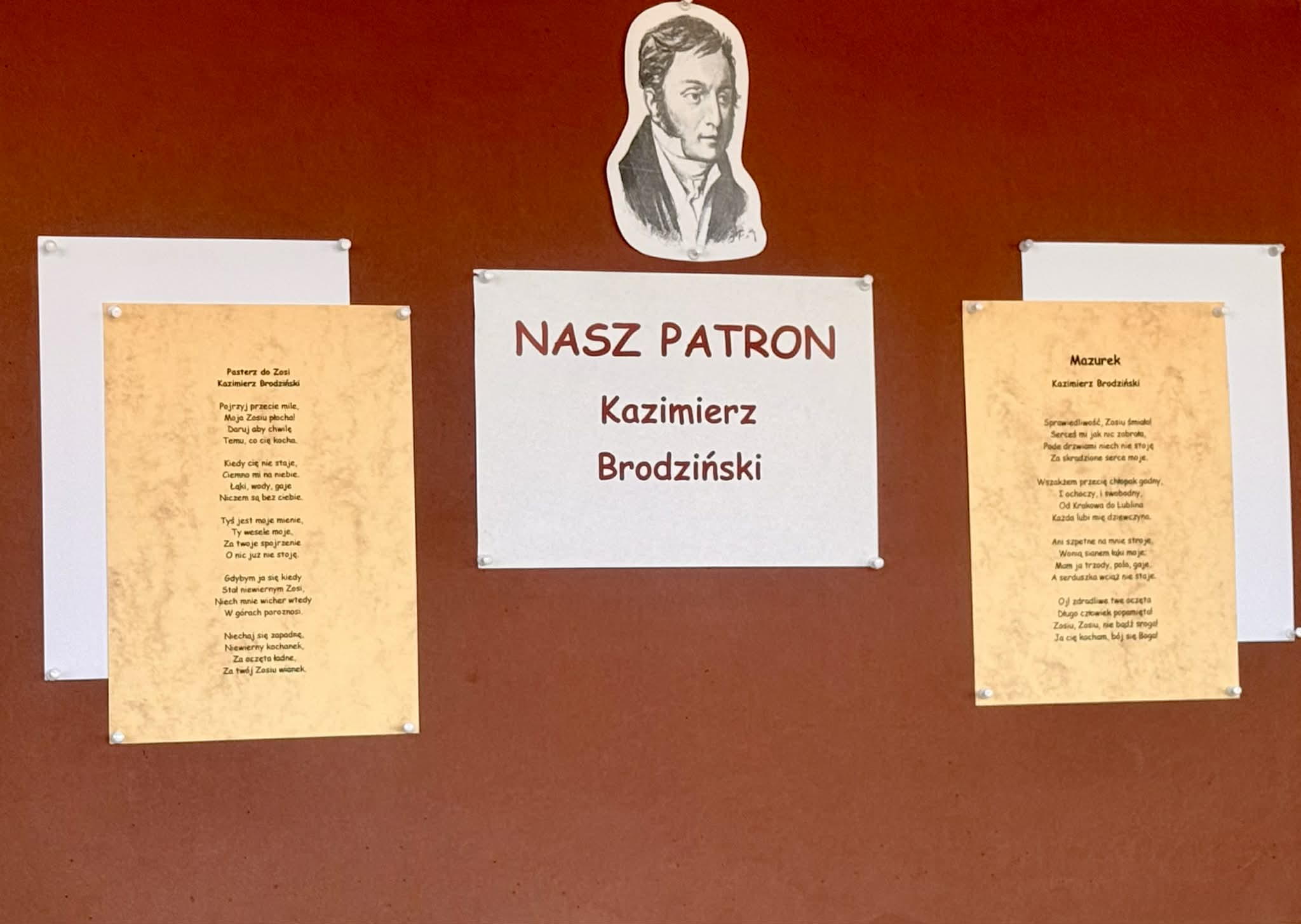 W naszej szkole odbył się konkurs na najciekawszą gazetkę poświęconą patronowi szkoły – Kazimierzowi Brodzińskiemu. Uczniowie przygotowali prace z dużym zaangażowaniem i starannością. Komisja konkursowa oceniała gazetki zgodnie z ustalonymi wcześniej kryteriami konkursowymi, biorąc pod uwagę m.in. pomysłowość, estetykę wykonania, poprawność merytoryczną oraz zgodność z tematyką.