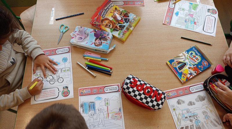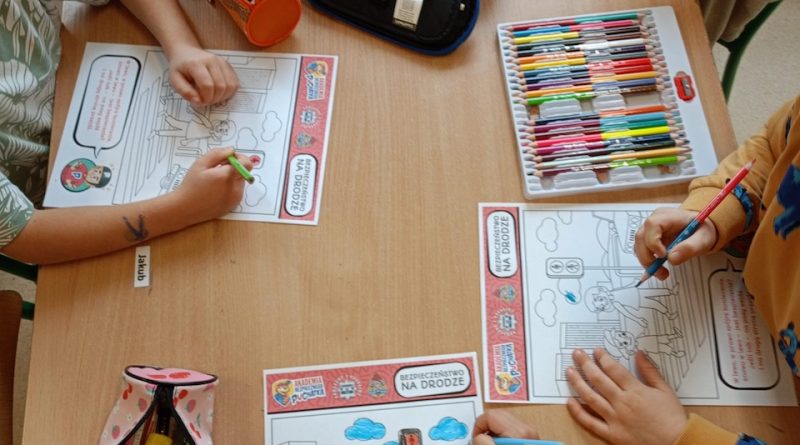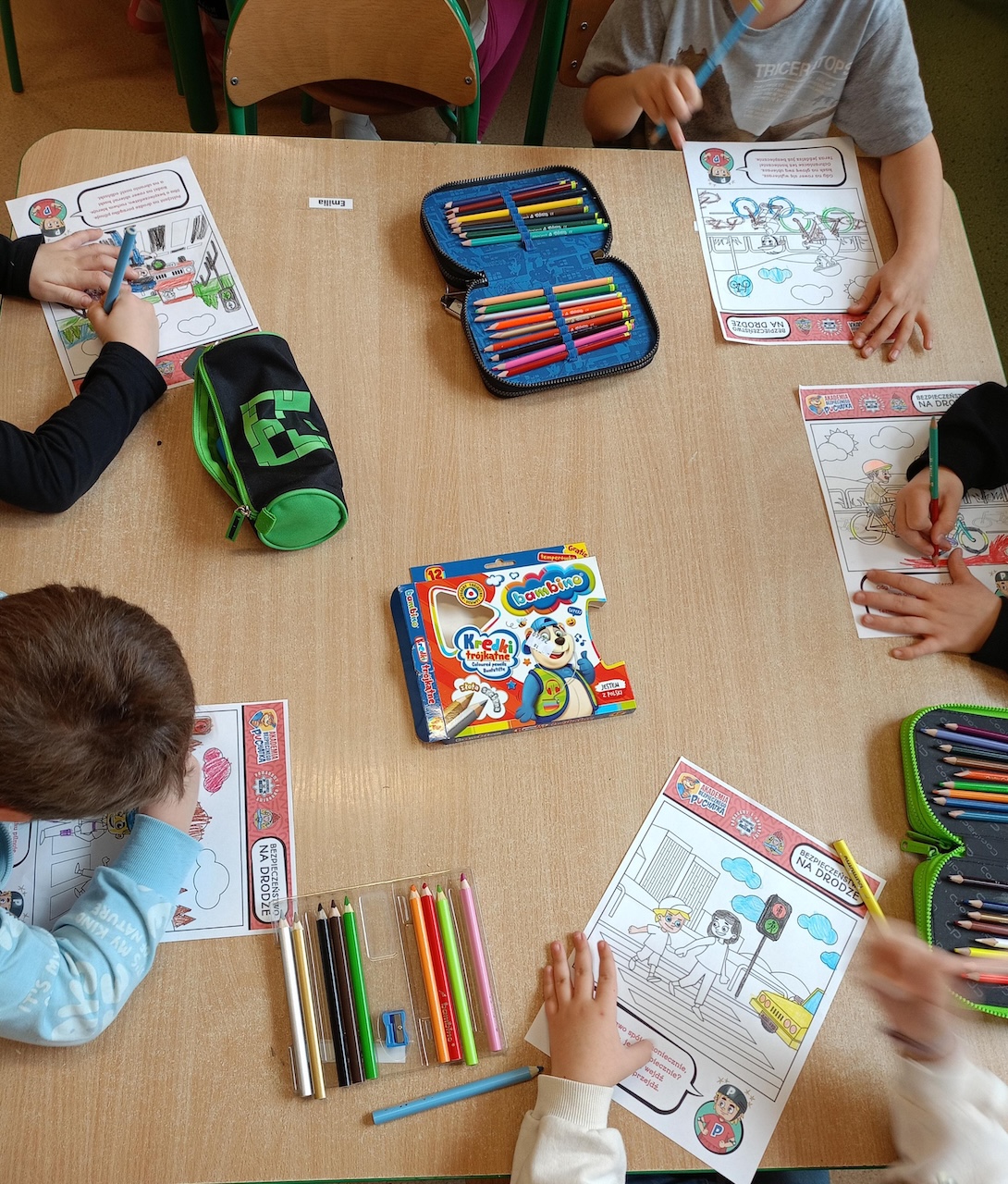 Oddział przedszkolny w ramach XVII EDYCJI PROGRAMU „AKADEMIA BEZPIECZNEGO PUCHATKA” zrealizował pierwszy temat: Jesteśmy bezpieczni na drodze.