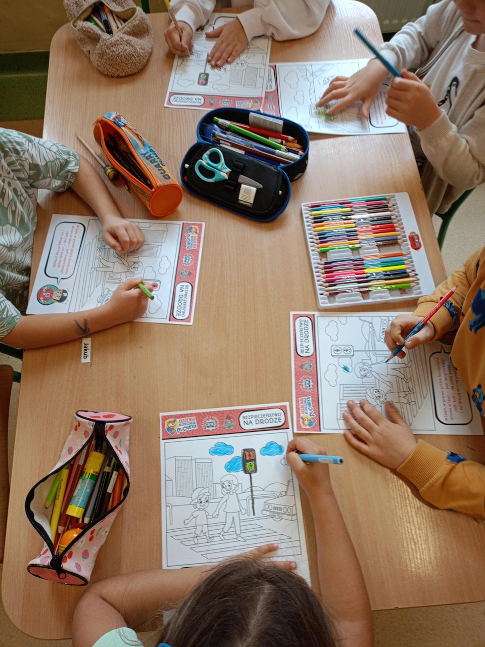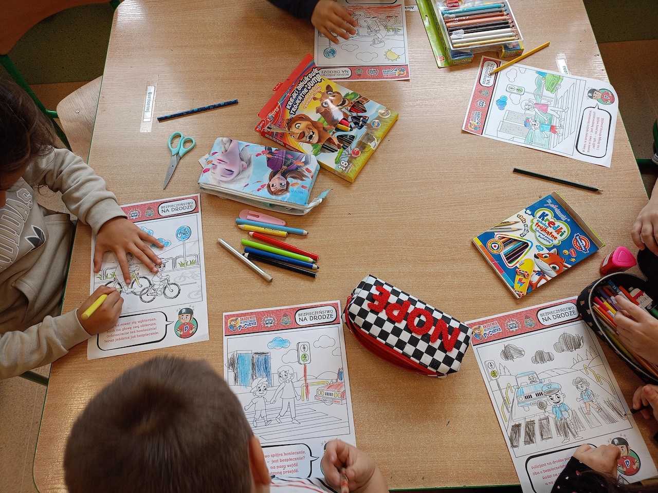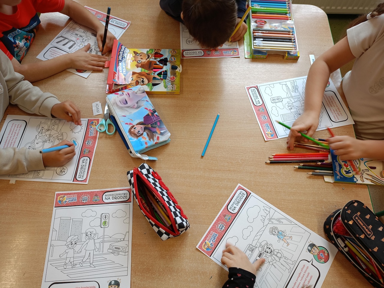 Dzieci utrwaliły wiedzę o zasadach ruchu drogowego dotyczących podstawowych zasad bezpiecznego przechodzenia przez jezdnię, dowiedziały się jak właściwie zachować się w pobliżu drogi i na przejściu dla pieszych. (MZ)