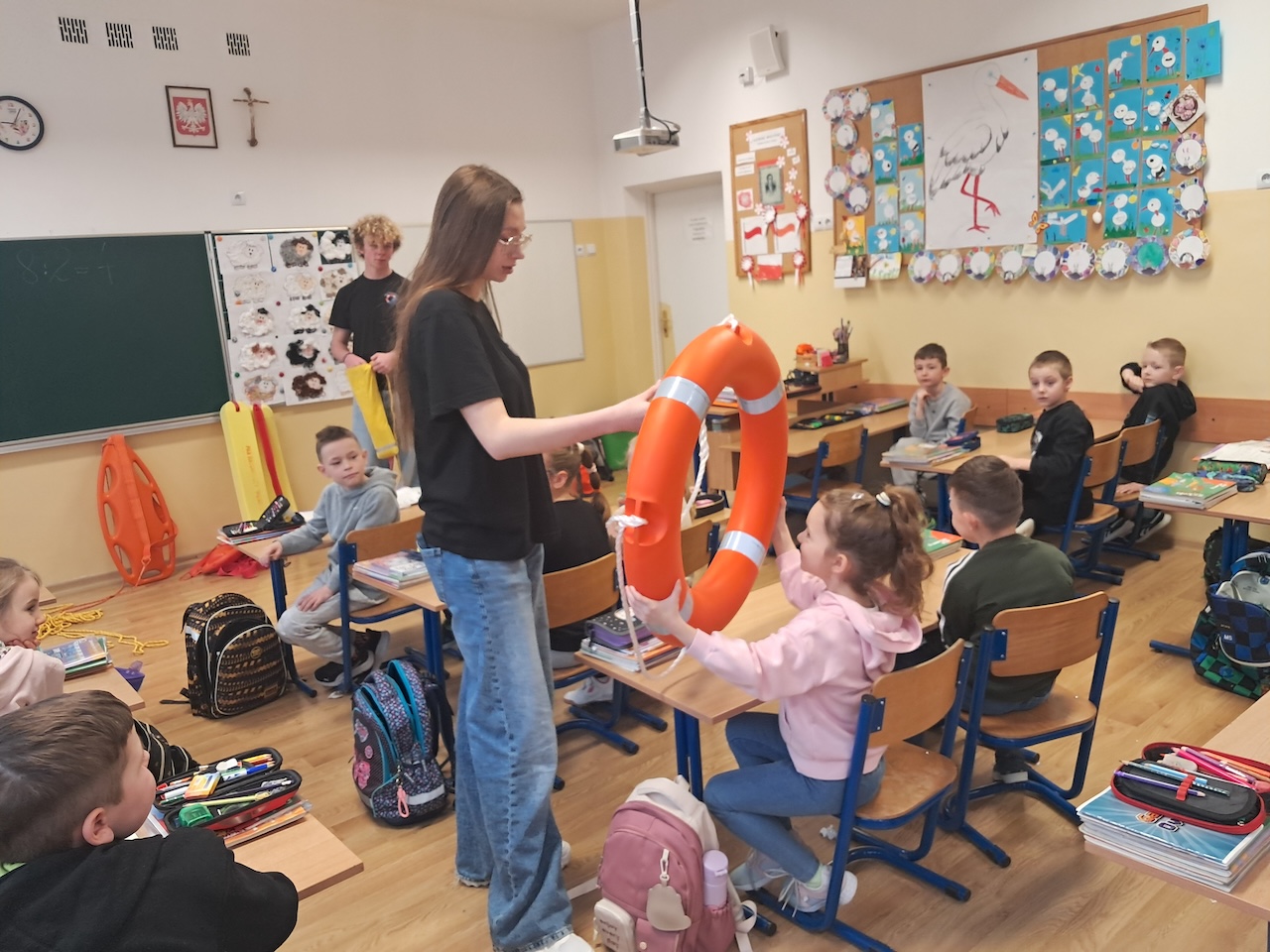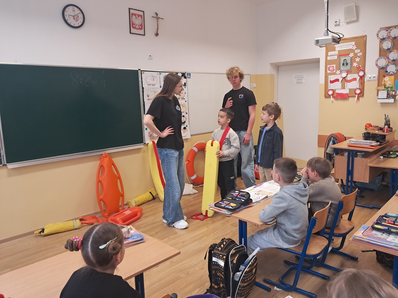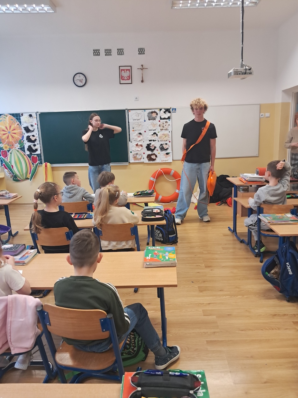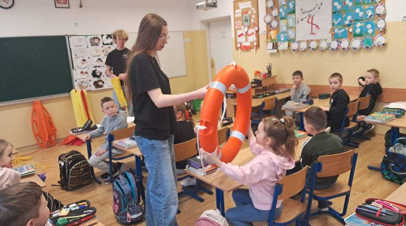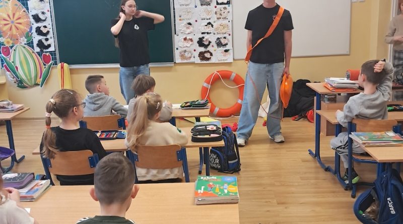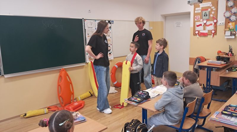 W ramach innowacji ” Zdrowie i bezpieczeństwo na codzień” zostały przeprowadzone zajęcia z ratownikami ze Stowarzyszenia Resacue Team Bochnia. Podczas zajęć z uczniami przeprowadzono rozmowę na temat zasad bezpiecznego zachowania nad wodą. Dzieci poznawały podstawowe zagrożenia poprzez przykłady. W trakcie prelekcji pokazano, jak wygląda sprzęt ratowniczy oraz omówiono jego zastosowanie. Uczniowie uczyli się także, jak prawidłowo wezwać pomoc i jak zachować się w sytuacji zagrożenia. Zajęcia zostały wzbogacone o elementy zabawy i aktywności, dzięki czemu dzieci mogły lepiej przyswoić przekazywane treści.
